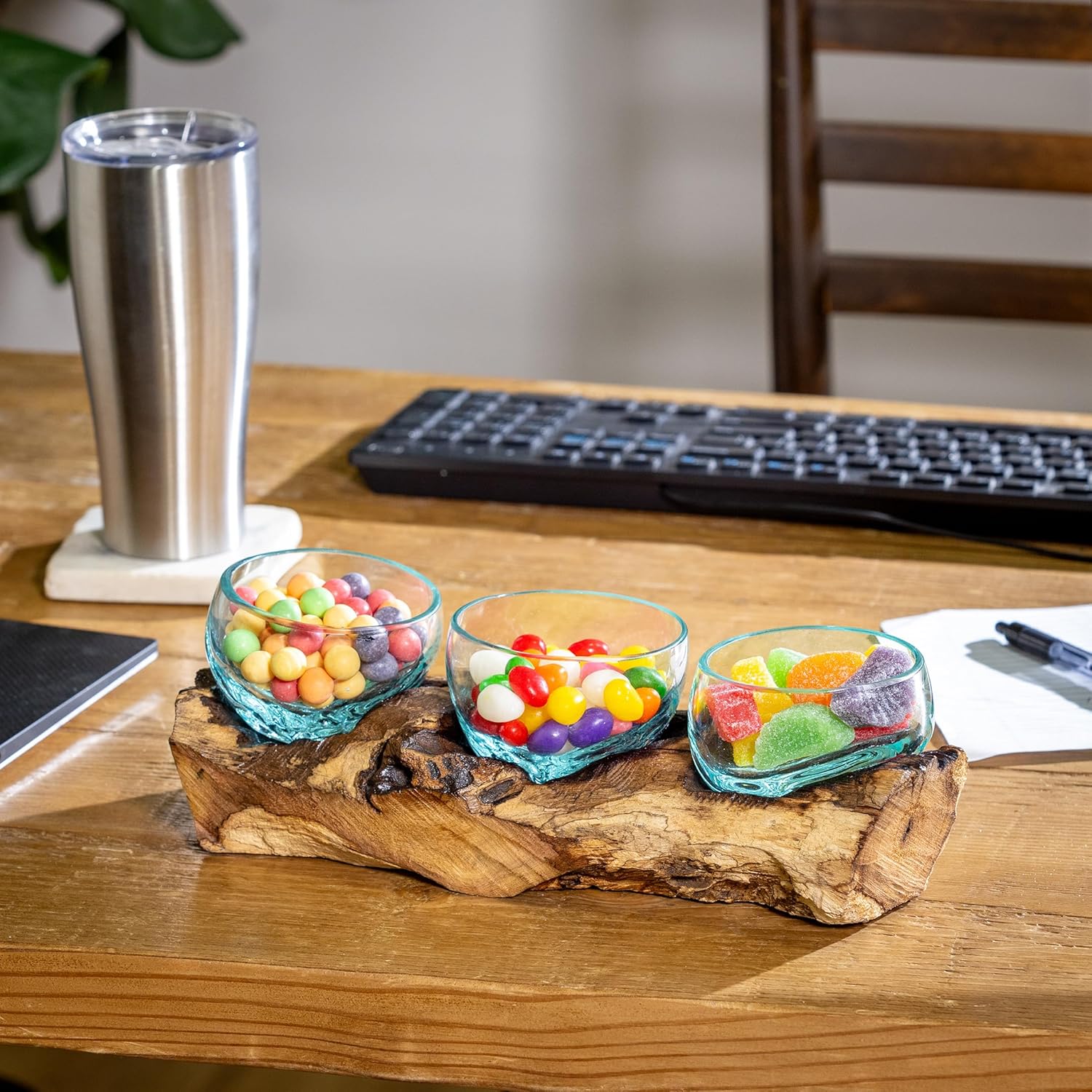 - ECO FRIENDLY BEAUTY: Our hand-blown bubble glass terrarium is as beautiful as it is unique. Each one is different from the next, providing you with a one-of-a kind planter, centerpiece, succulent garden or air plant display. Hand-crafted from glass and driftwood by artisans in Bali, Local artists used blow pipes to transform melted shards of collected scrap glass into a one-of-a-kind bowls that fit snugly into the driftwood-root base
