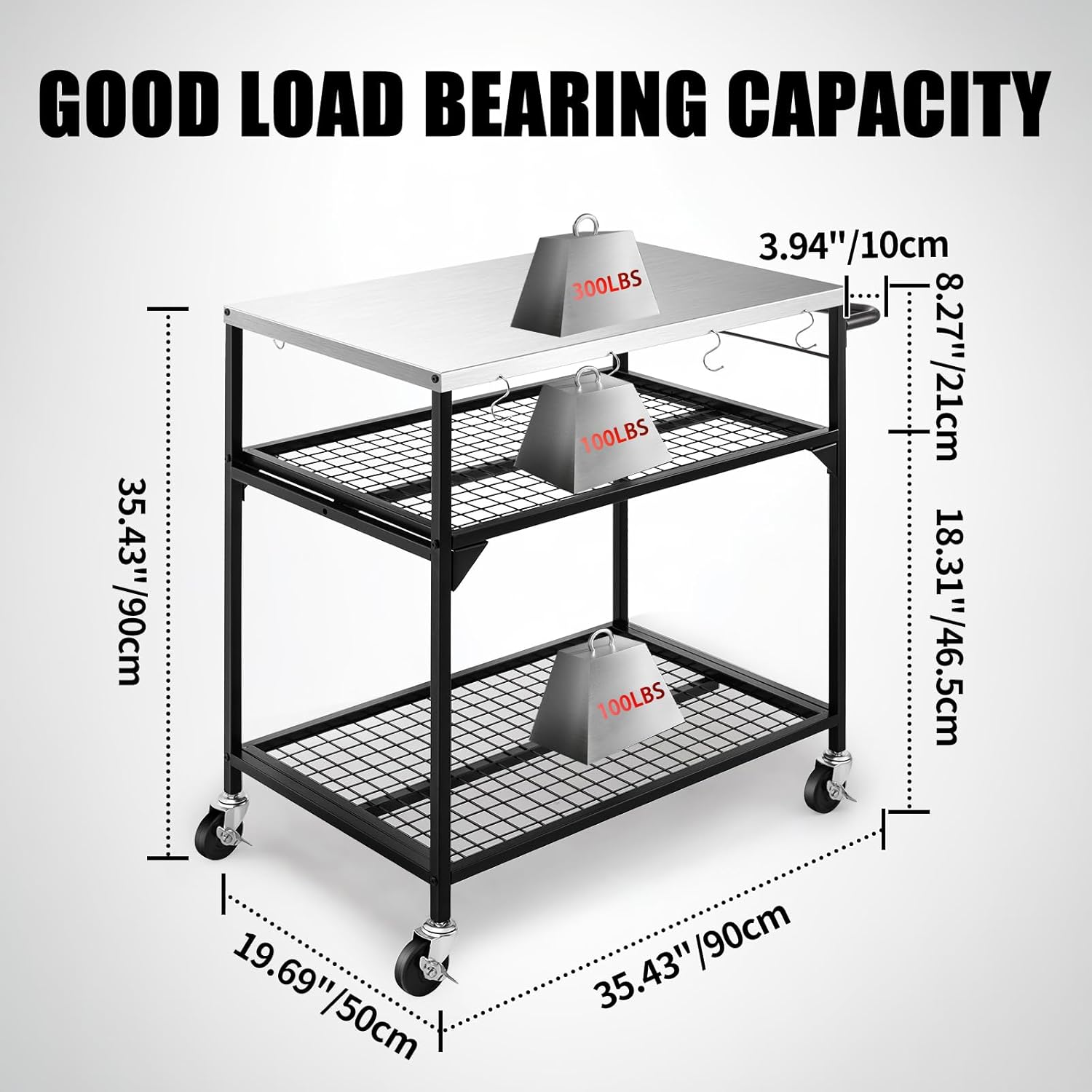 - Heavy Duty Grill Cart: The load capacity of the outdoor pizza oven table top is 300 lbs and the shelves are 100 lbs. The frame of the LoJok outdoor grill cart is made of high-hardness iron. The surface of this Outdoor Pizza Oven Table utilizes electrostatic spraying technology, forming a uniform anti-rust oil film that provides superior protection.This outdoor pizza oven table is perfect for placing a pizza oven and pizza oven accessories, portable grill or griddle; Additionally, the outdoor pizza oven table creates ample workspace for outdoor cooking, serving, or kitchen prep, all with an easy-to-clean finish.