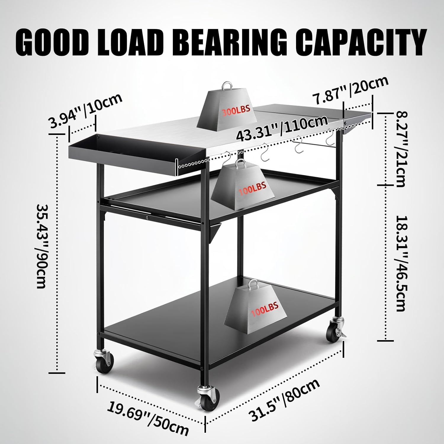 - Heavy Duty Grill Cart: The load capacity of the outdoor pizza oven table top is 300 lbs and the shelves are 100 lbs. The frame of the LoJok outdoor grill cart is made of high-hardness iron. The surface of this Outdoor Pizza Oven Table utilizes electrostatic spraying technology, forming a uniform anti-rust oil film that provides superior protection.This outdoor pizza oven table is perfect for placing a pizza oven and pizza oven accessories, portable grill or griddle; Additionally, the outdoor pizza oven table creates ample workspace for outdoor cooking, serving, or kitchen prep, all with an easy-to-clean finish.