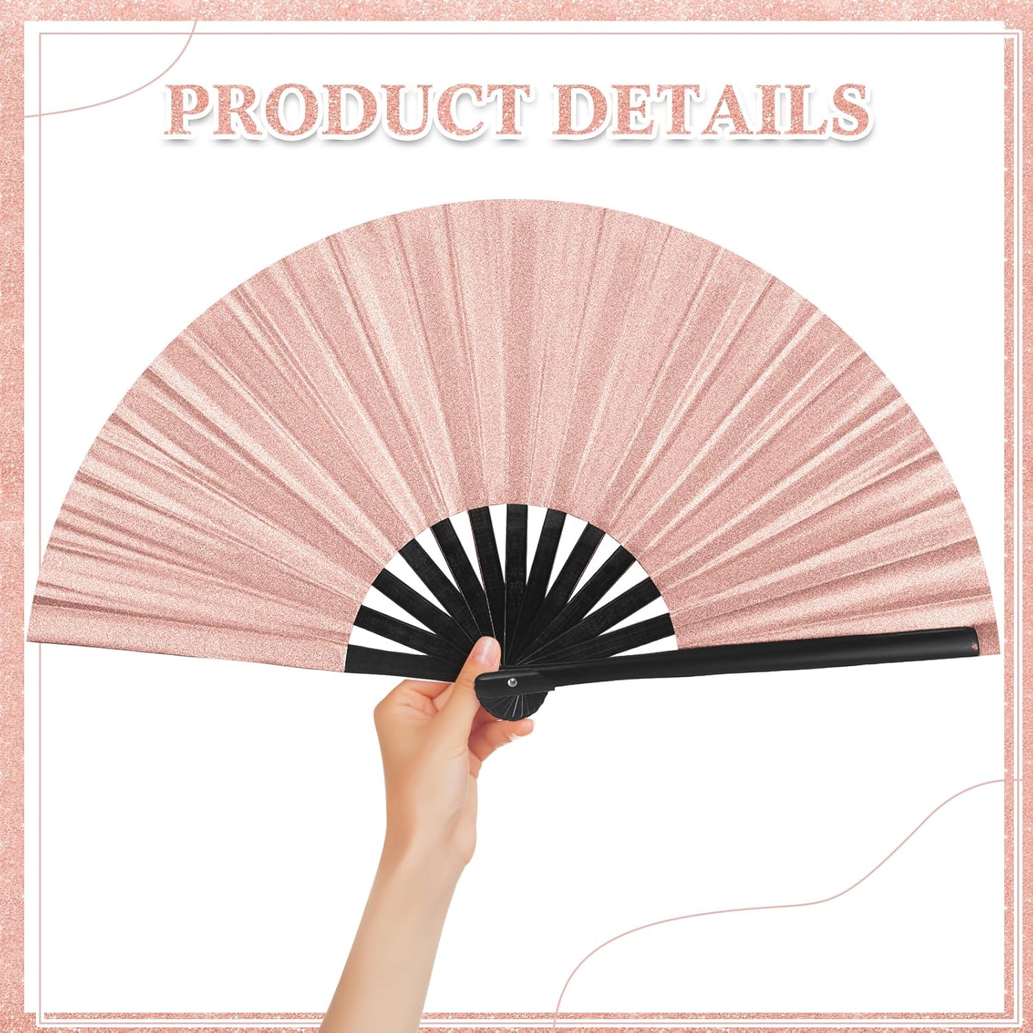 Maitys 2 Packs Large Clap Fans for Line Dancing Large Chinese Folding Hand Fans for Men and Women, Festival, Tai Ji, Kungfu, Martial Art, Gifts (Glitter Champagne)