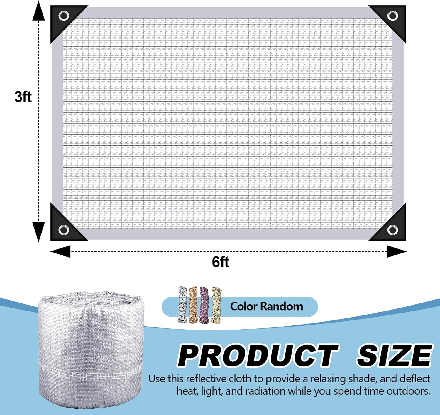 - Large Size for Daily Use: this 3 x 6ft aluminium foil shade cloth is suitable for daily usage; It's designed to meet your different needs, providing a large shaded area to keep your space cool and comfortable