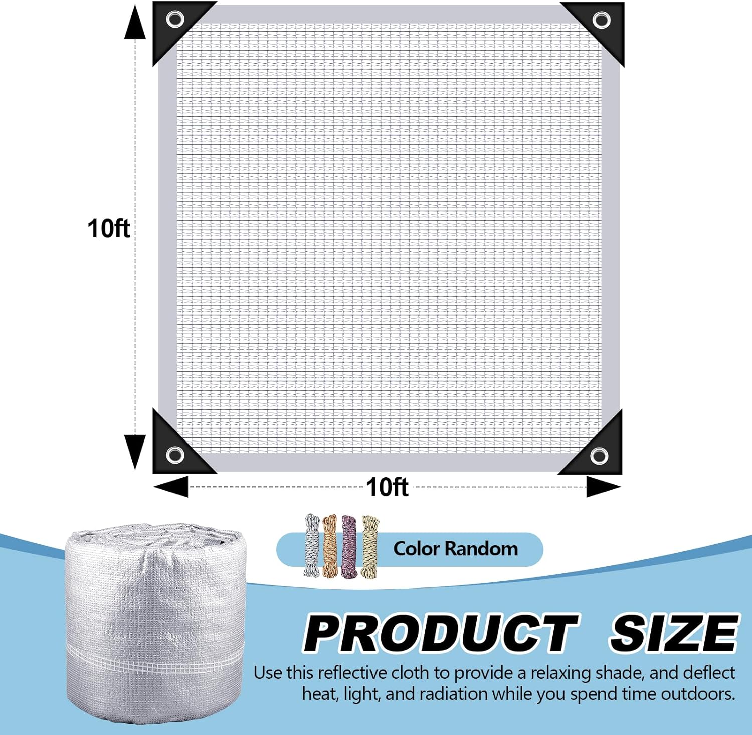 - Large Size for Daily Use: this 10 x 10ft aluminium foil shade cloth is suitable for daily usage; It's designed to meet your different needs, providing a large shaded area to keep your space cool and comfortable