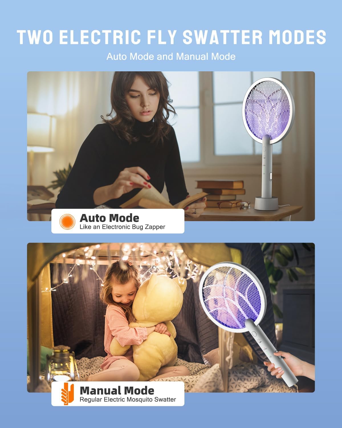 - 2-in-1 Multi-Function Bug Zapper and Mosquito Swatter - Take on pesky insects with this Mosiller 2-in-1 Powerful Bug Zapper! Combining a high-performance bug zapper with a manual mosquito swatter, it's your ultimate weapon against flying insects. Perfect for both indoor and outdoor use, this versatile device ensures an insect-free environment without harmful chemicals.