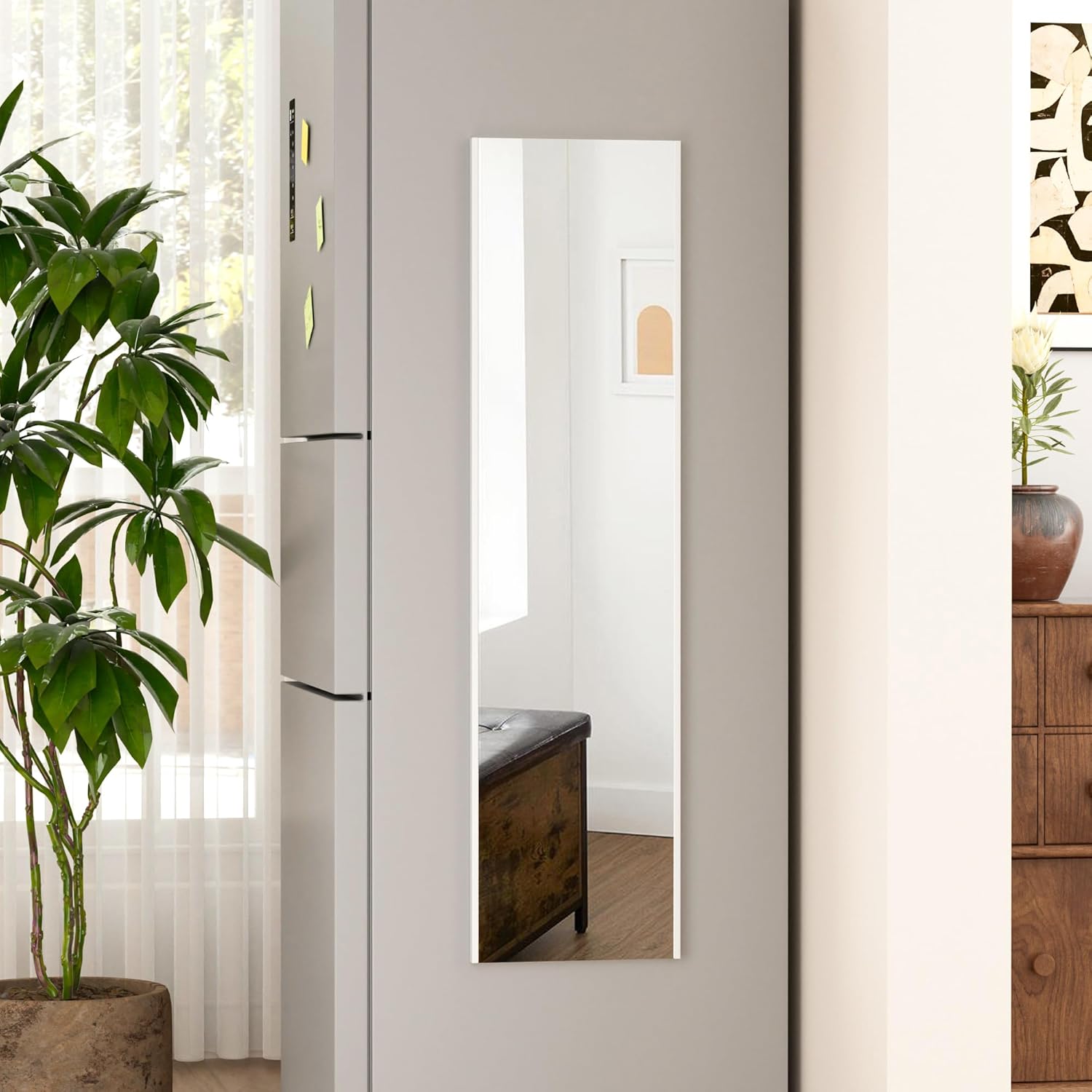 47"x12" Magnetic Mirror Lightweight Full-Length Mirror | Strong Adhesion, Easy Installation | Suitable for Refrigerators, Glass Walls, Wooden Doors, and More | 8.2kg Ultra-Strong Support | White