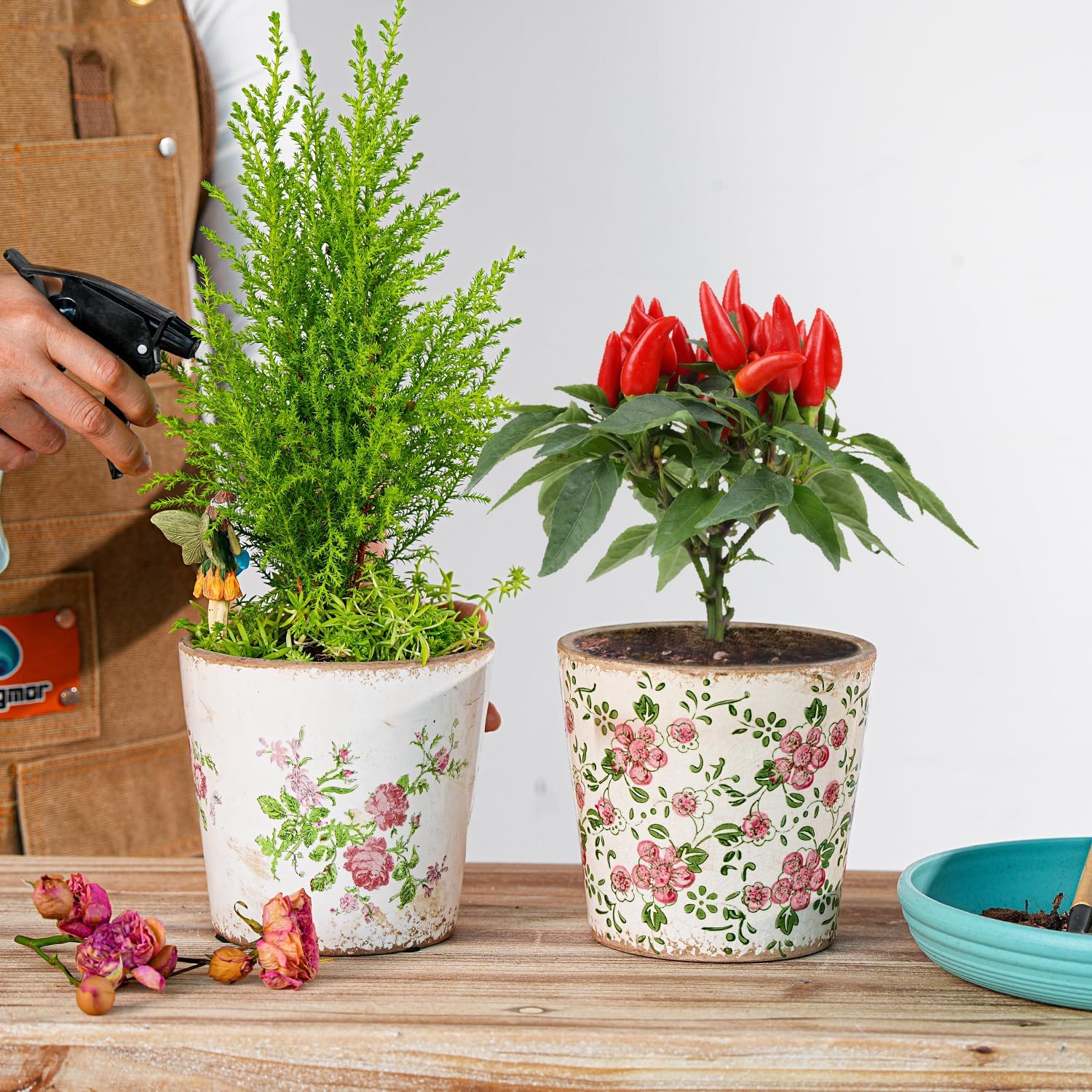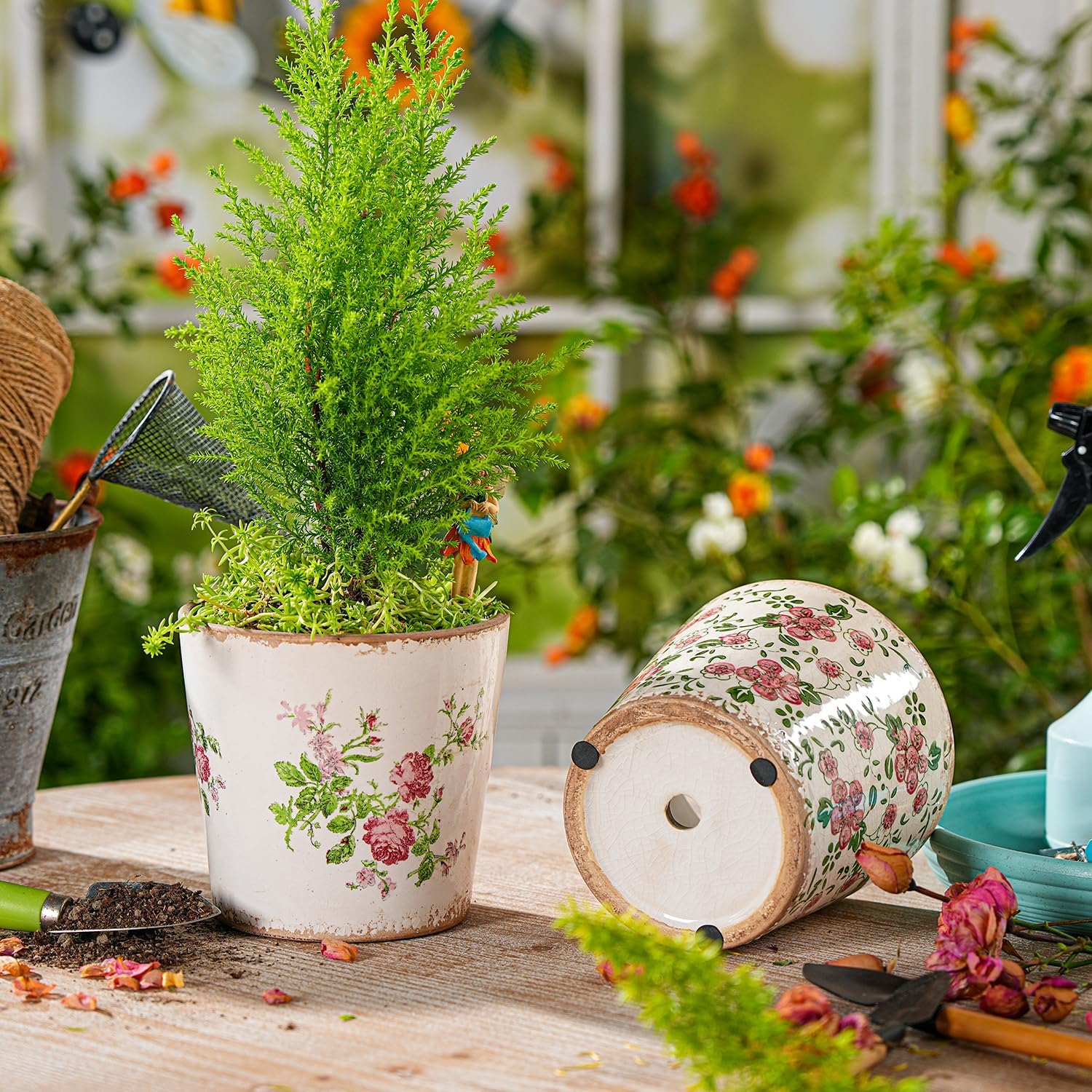 - Vintage Design: These ceramic flower pots feature ice crackle pattern and distressed craftsmanship with exquisite floral designs,that can perfectly match any decor style.