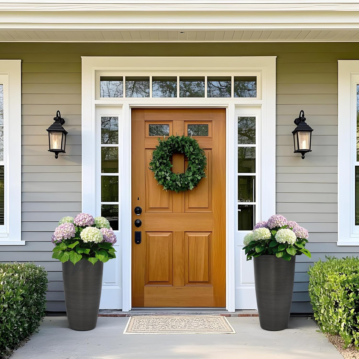 22.8" Large Tall Pot Planters, Set of 2 Modern Flower Pots with Handmade Brushed Metal Finish, Weather-Resistant for Indoor/Outdoor Year-Round Use