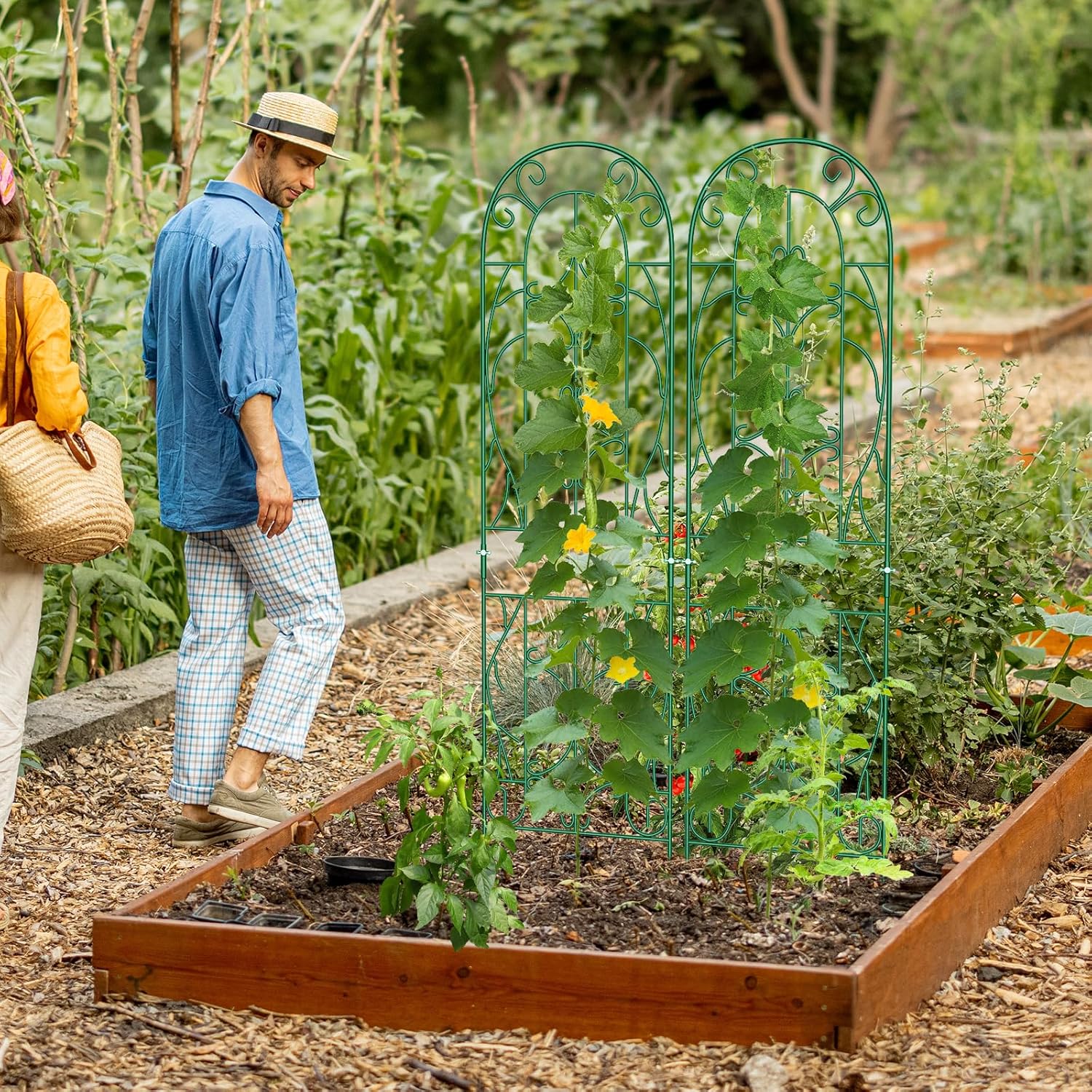 - PREMIUM QUALITY: 4 pack, 59" high x 16" wide, perfect size to work as wall iron garden trellis for climbing plants,rustproof metal garden trellis, proper size for climbing plants in the large planting pot, small flower pots with trellis working well with your planters in patio edges and raised garden bed corners to be metal trellis, outdoor decorative trellis,trellis for potted climbing plants, tall trellis for climbing roses, trellis for clematis,trellis for vines, trellis garden.