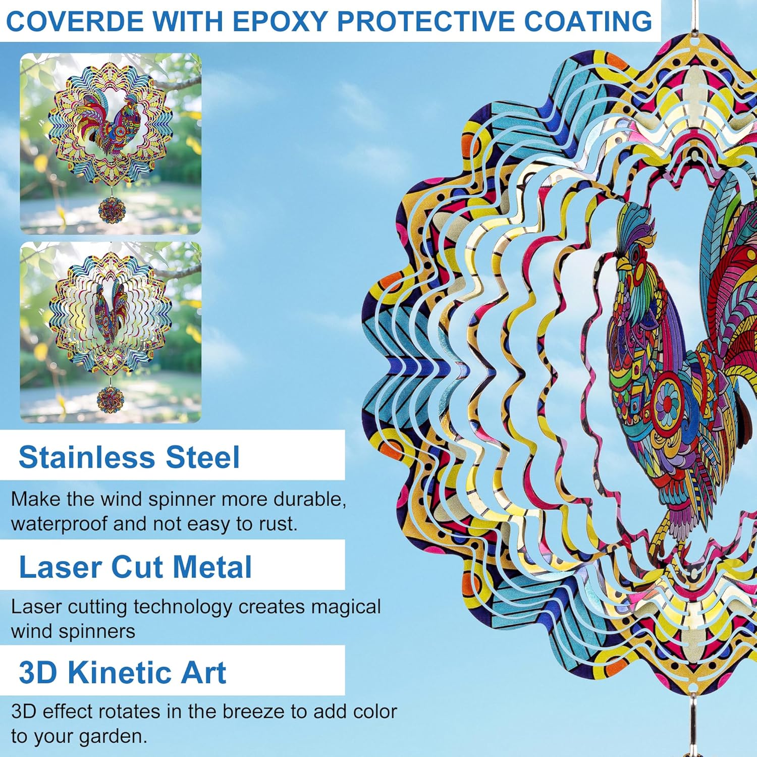 - ELEGANT SPINNING DESIGN: Wind spinners outdoor features a wind-powered spinning mechanism, the rooster wind spinner spins gracefully in the breeze, adding a lively touch to your garden or yard