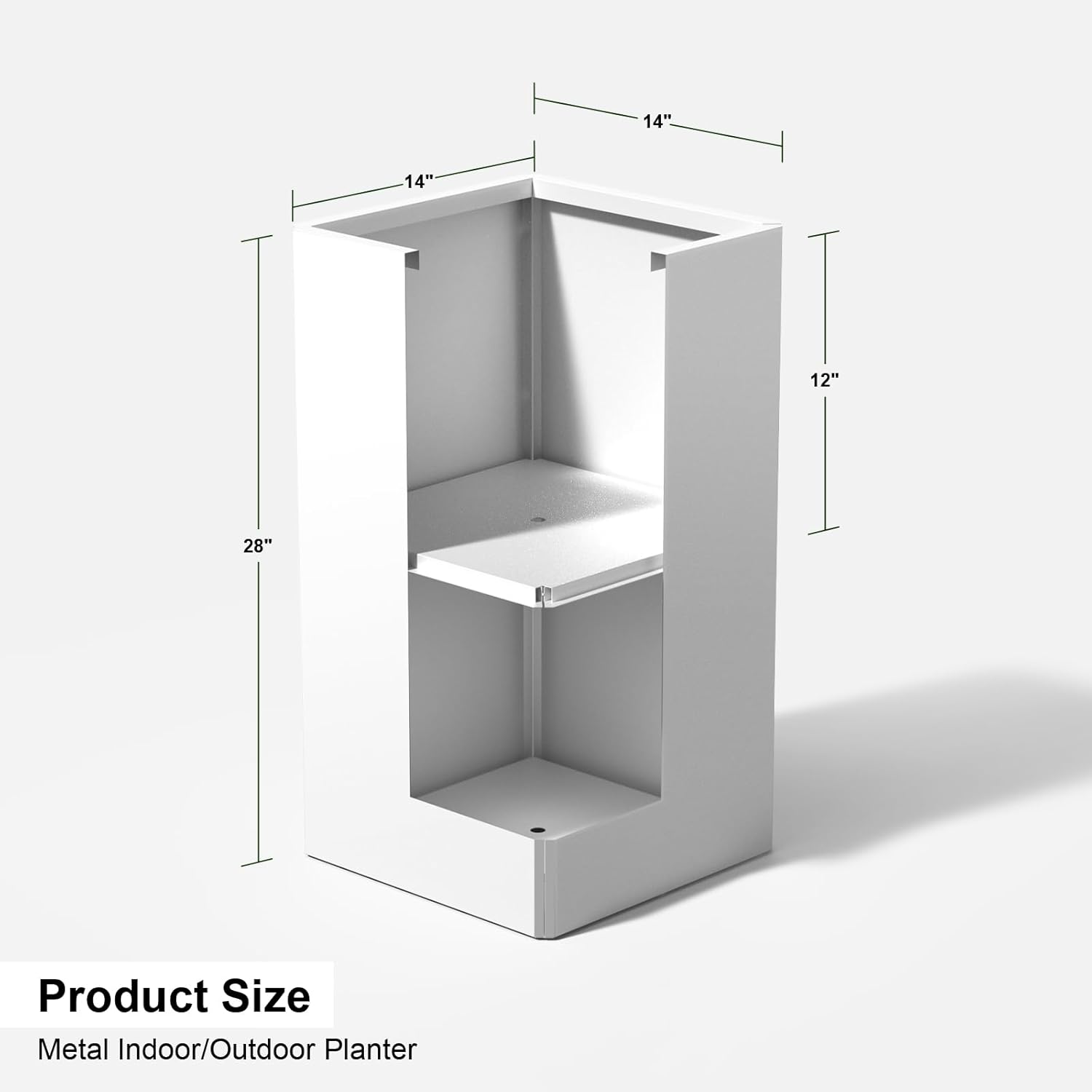 - White & Tall Metal Planter - 14" L x 14" W x 28" H, The tall planter box is equipped with 24 screws, a wrench, protective gloves and instructions. Note: This large metal outdoor flower pots needs to be assembled