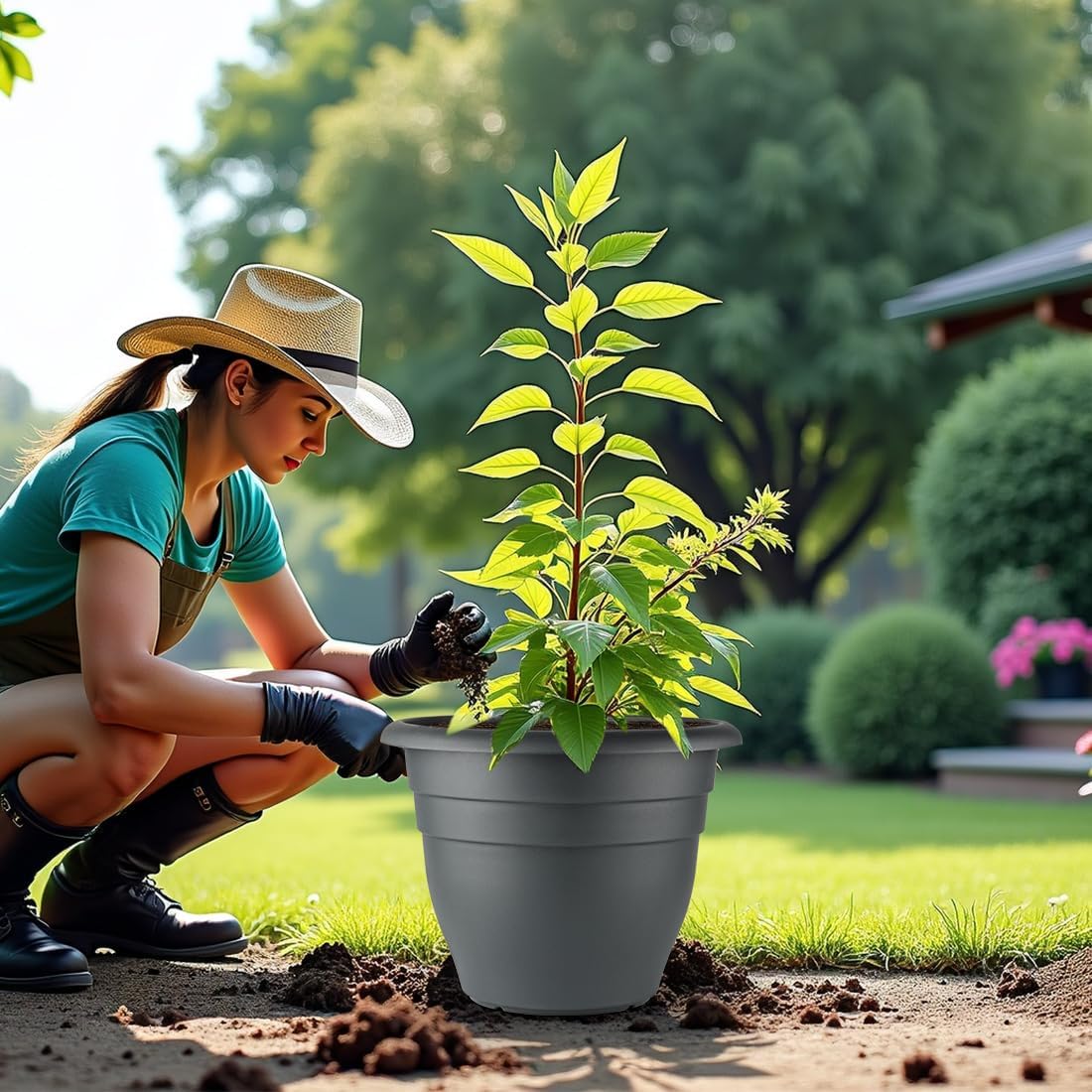 Large Plastic Pots for Plants, 16 Inch Planters for Outdoor Plants, Durable and Lightweight Flower Pots, Large Outdoor Planters(Pack of 3, Gray)