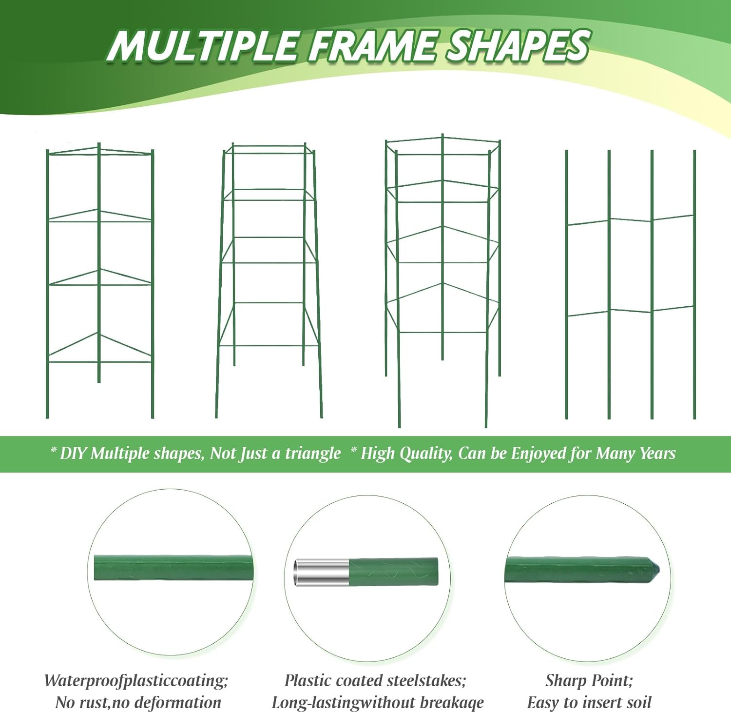 - Premium Quality & Long-Lasting Tomato Cage: Constructed from robust metal with a green, non-fading plastic coating, our stakes withstand both indoor and outdoor conditions. Easy to assemble and customize, you can adjust the height and length to suit your plants' needs, ensuring versatility and reliability