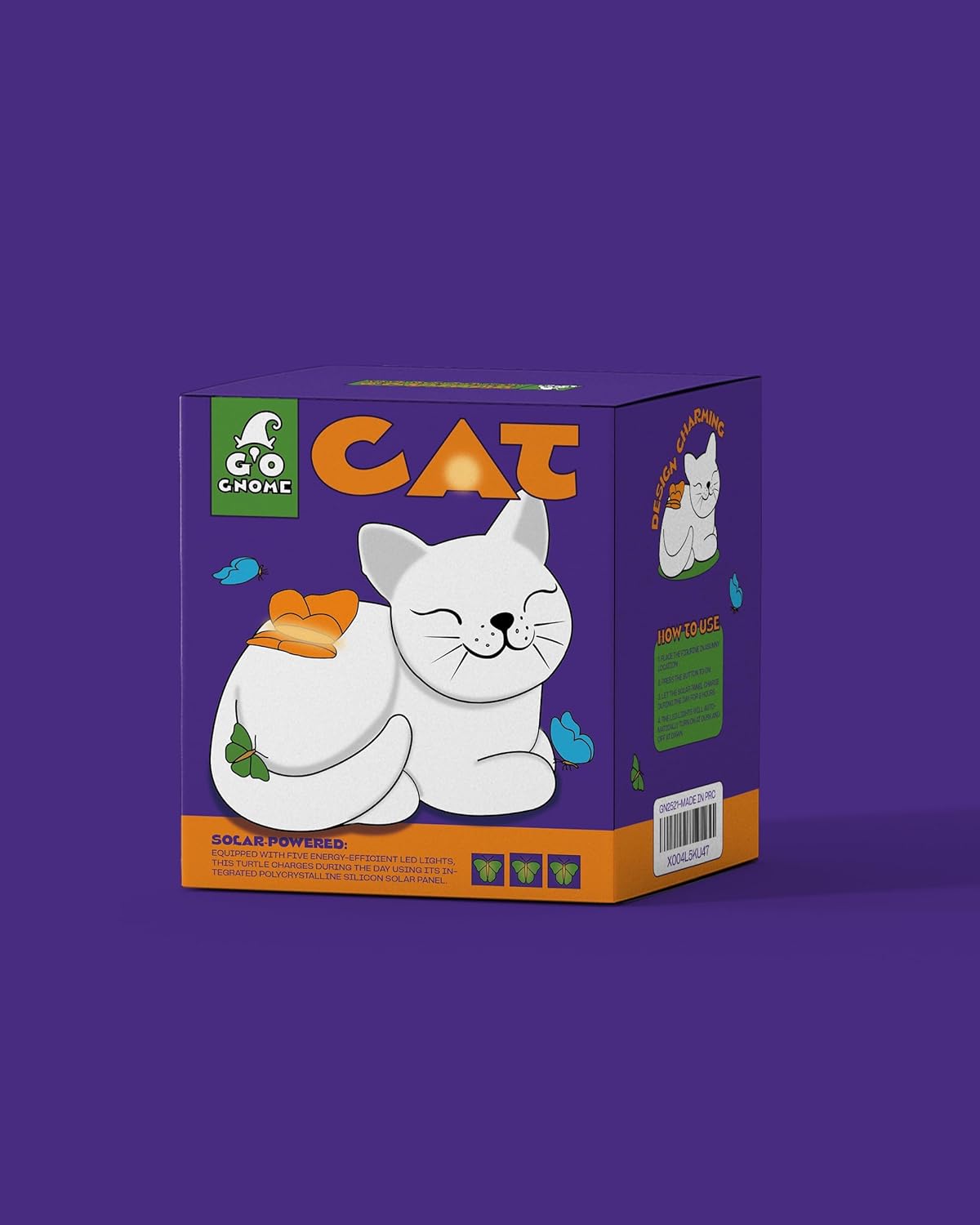 - ADORABLE 5-INCH CAT FIGURINE: Features a smiling grey cat cuddled with a glowing butterfly. Perfect size (5" Length) to fit on garden tables, steps, or flower beds.