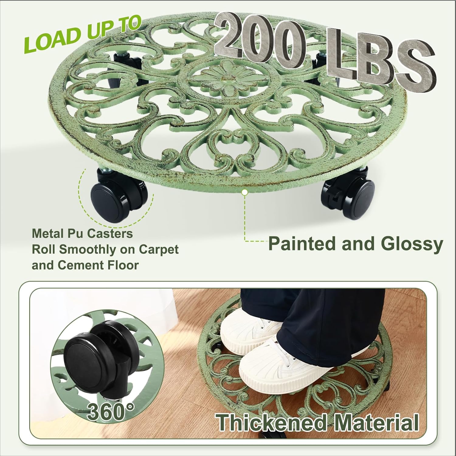 - Strong Load-Bearing: This heavy-duty indoor plant dolly is crafted from cast iron; Cast iron plant stands indoors can hold large and heavy flower pots or other items. 4 wheels provide better stability than 3 wheels.