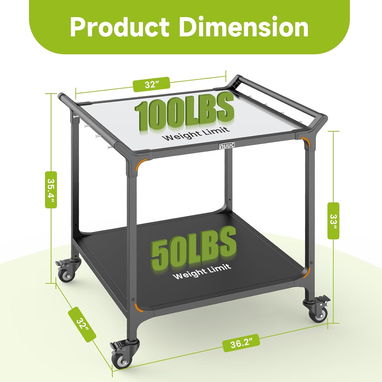 - Impressive Storage: The double levels shelves design offers ample storage space; hooks are provided on both sides of the tabletop for space-saving and convenient hanging of brushes, spatulas, and other grilling tools; the side handle bar can be used for hanging towels.