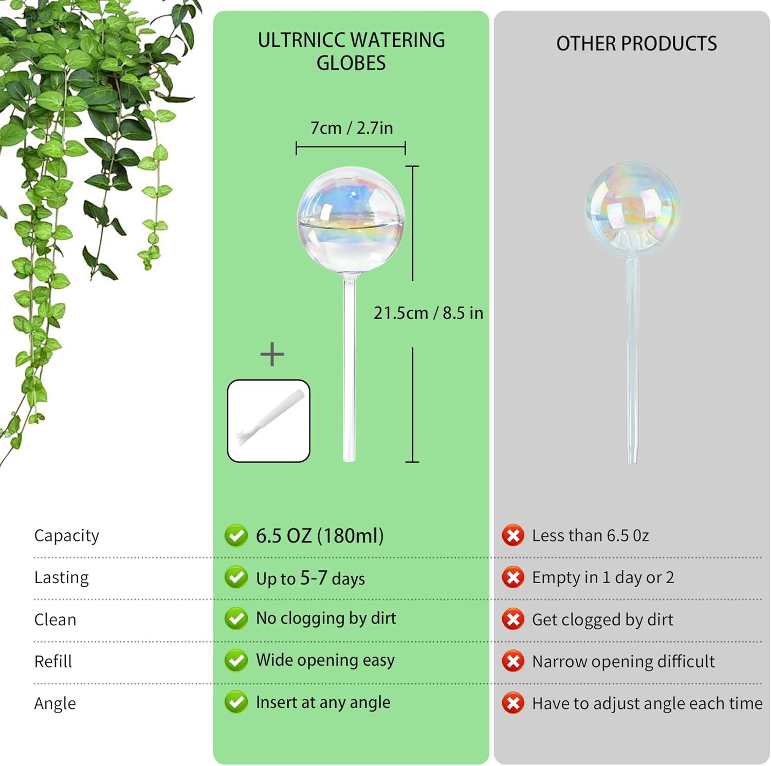 - ✨ Elegant & Decorative Iridescent glass watering globes add charm to your plants, resembling floating soap bubbles that refract sunlight beautifully. Perfect for plant lovers seeking aesthetic and functional accessories.