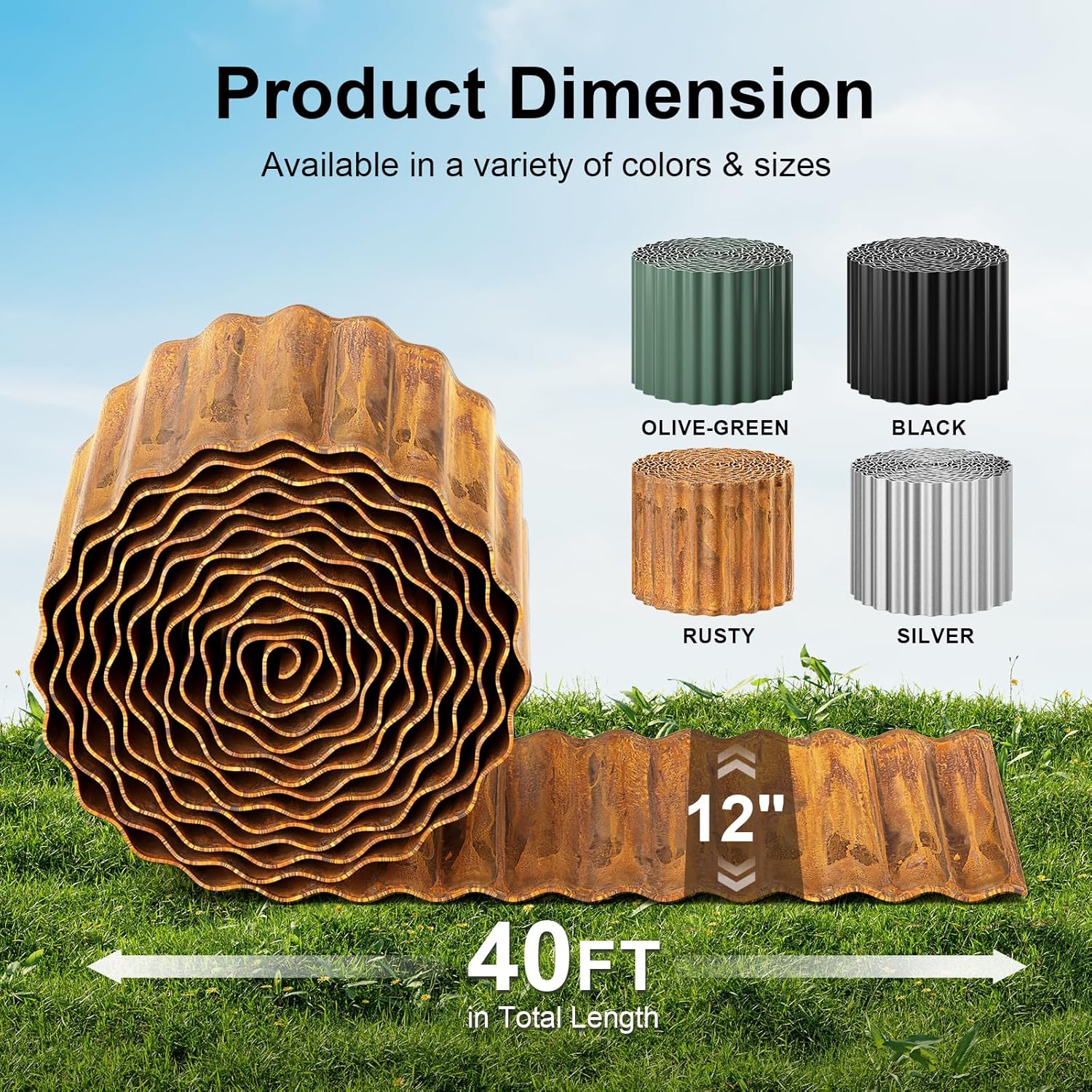 Land Guard Corrugated Garden Edging Border,12" x 40' Landscape Paver Edging, Tall Landscape Edging, Fence for Garden, Flower Bed, Lawn and Landscape Edging (Rusty)
