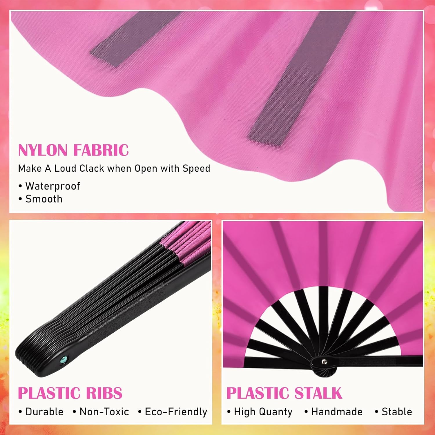 - Wide Applications: our clacking rave fans for line dancing can be applied for stage, theater performances, dance routine, wedding, church, party, decoration, cosplay, carnival, anniversary and so on
