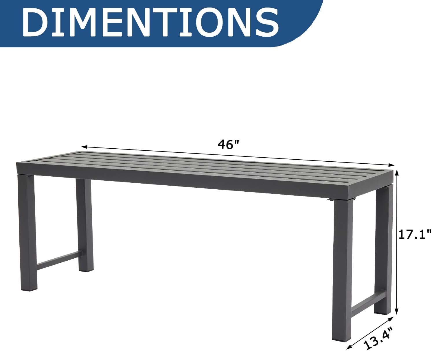 46" Outdoor Metal Backless Bench Set of 2, All-Weather Patio Garden Bench for Backyard, Porch, or Lawn, Durable Steel Bench for Outdoor Spaces, Grey