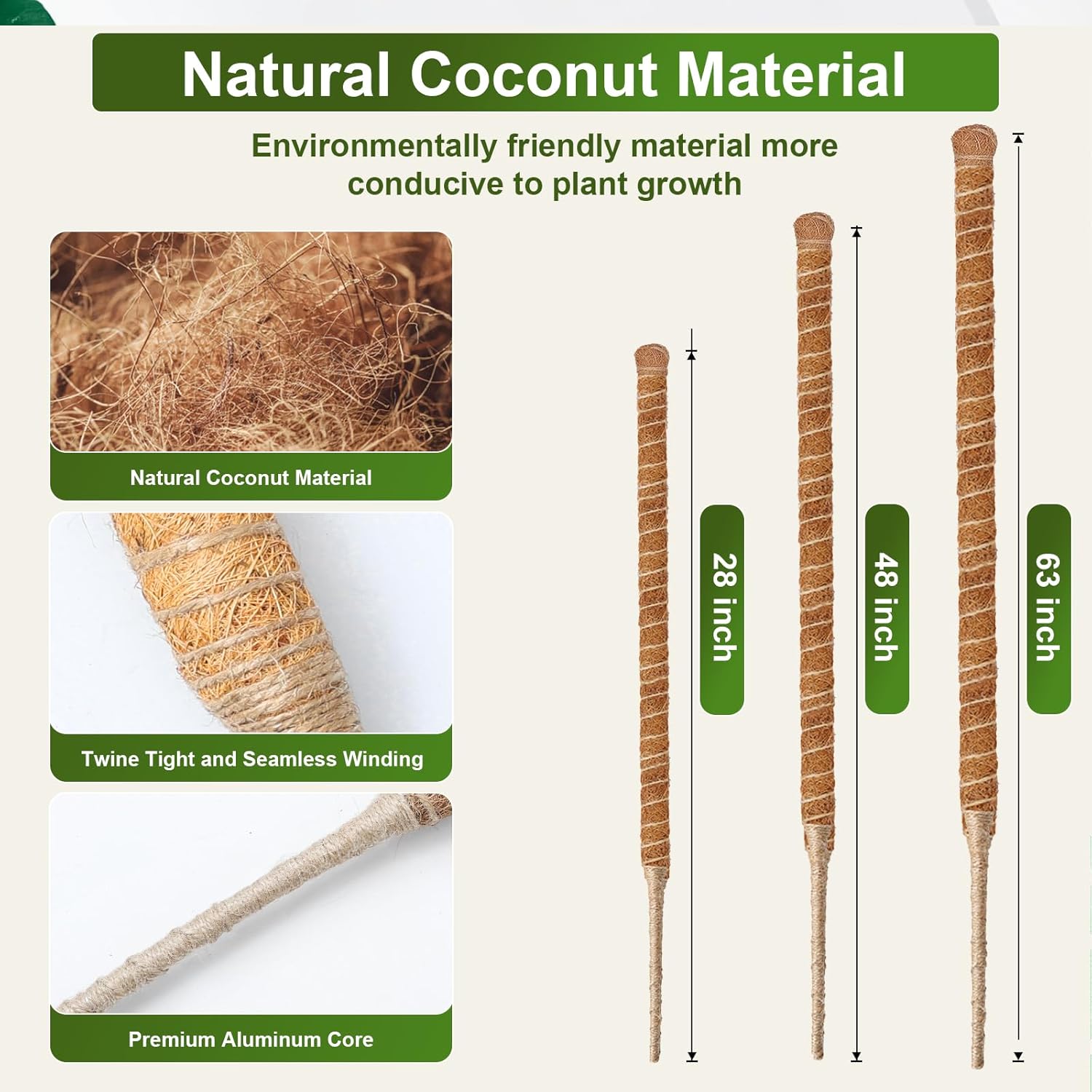 - Environmentally Friendly Material - The natural coconut palm fiber used in the outer layer, the breathable material helps the healthy growth of the plant, and the 5mm solid aluminum used in the inner core makes them very strong enough to support tall and heavy climbing plants, these moss pole monstera plant support will not rust in the soil for too long, will not break down, so they can be used for a long time.