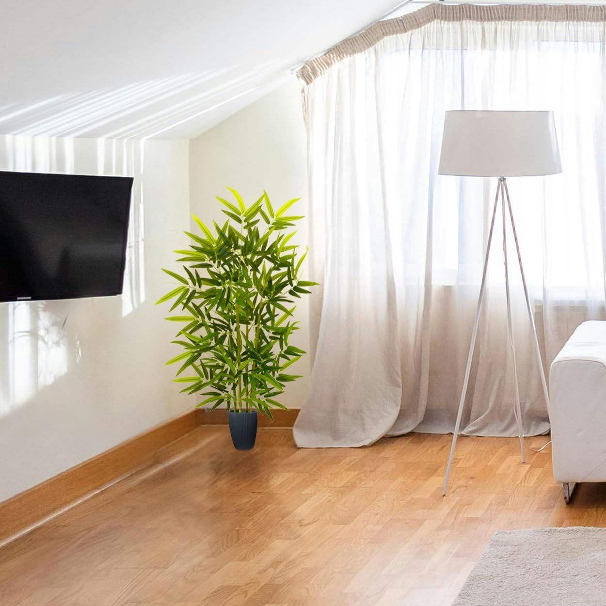 - Nearly Natural Design: This tree is comes with 4pcs nearly natural trunks. It is easy to assemble and stable. The unique bamboo leaf design makes the bamboo tree more realistic and looks no different from a real tree.