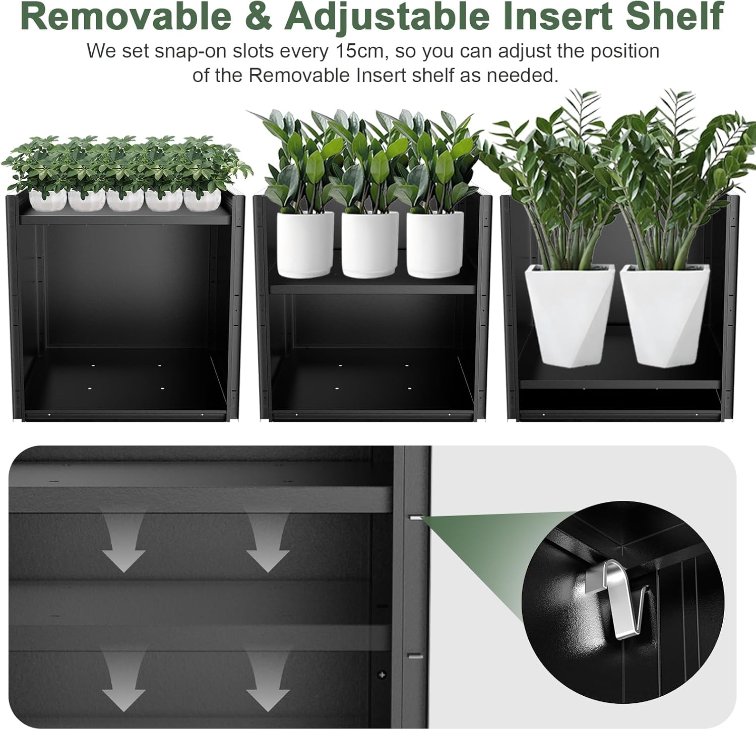 - 【Efficient Drainage System】The insert shelf has 6 drainage holes and the bottom of the steel planter box also has 6 drainage holes, which prevent excessive water accumulation and cause plant root rot, it ensures optimal plant more health for flourishing growth.