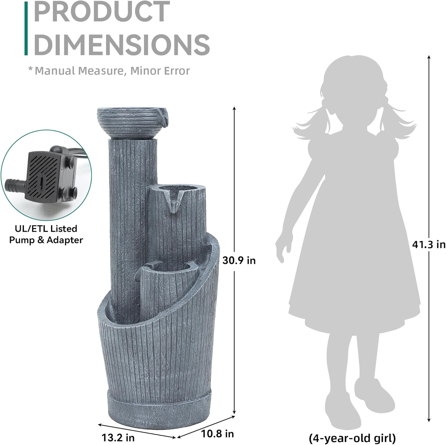 - Modern Minimalist Outdoor Fountain⛲: Showcasing a bold 5-tier geometric pedestal design with a graceful twist, this outdoor water fountain combines clean lines with a handcrafted concrete-style finish and fluted textures. Standing 31" tall, it serves as a striking focal point that brings sleek modern style and peaceful ambiance to any garden, patio, deck, or backyard.