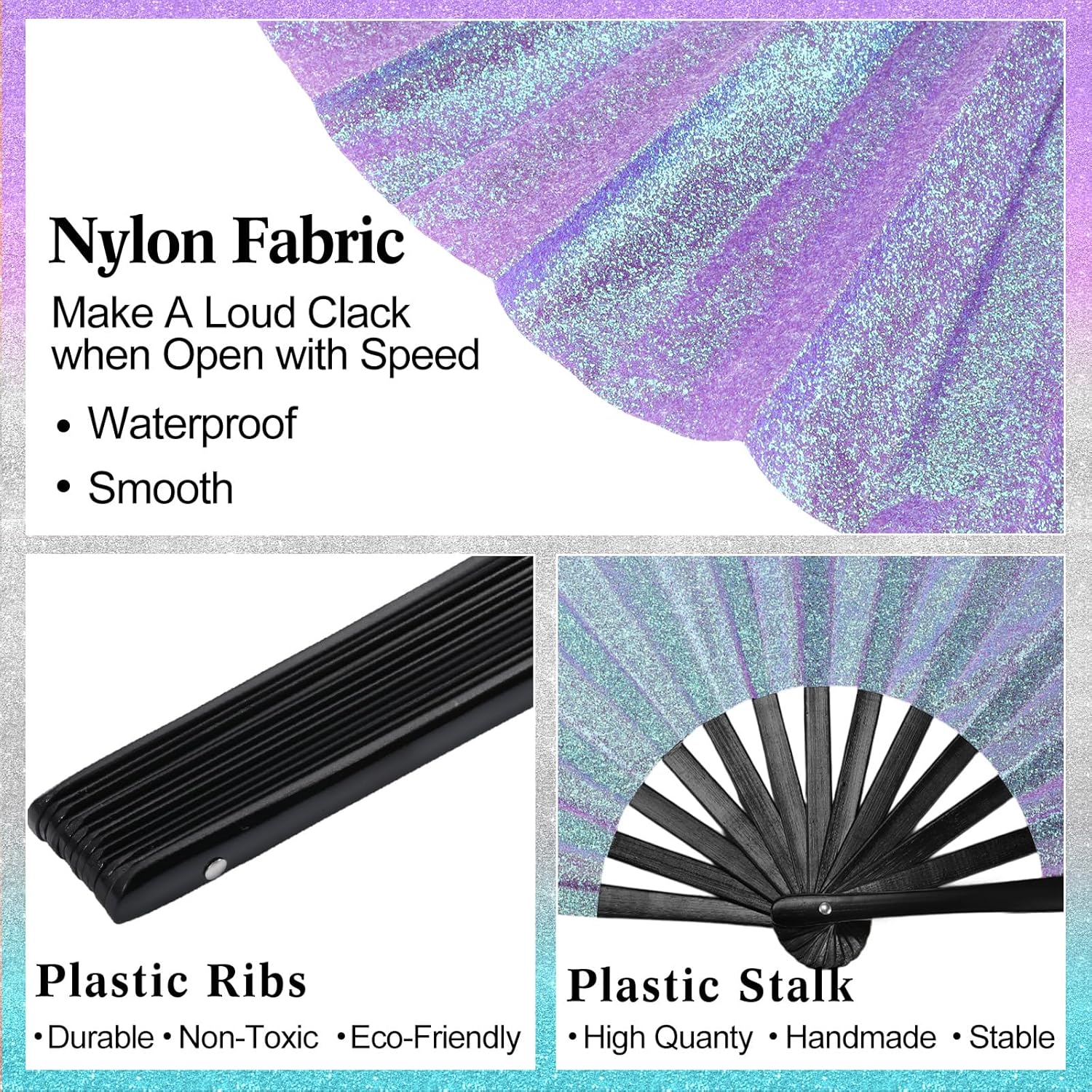 - Material and Measurement: made of quality plastic and glitter sliver and purple nylon cloth, lightweight and sturdy fabric, and each fan measures approx. 13.4 x 25 inches/ 34 x 63.5 cm (L x W, unfold state)