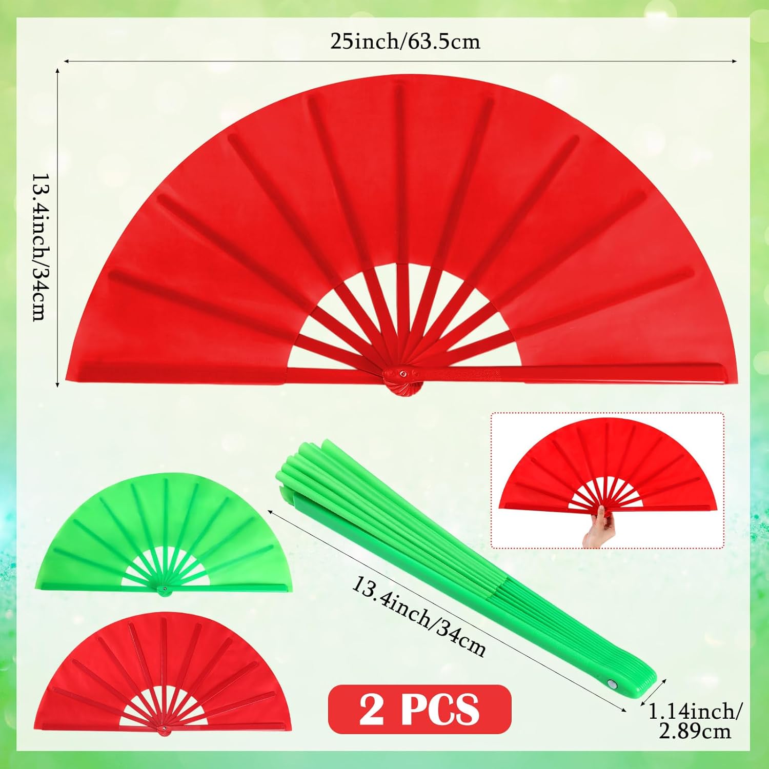 - Material and Measurement: made of quality plastic and green and red nylon cloth, lightweight and sturdy fabric, and each fan measures approx. 13.4 x 25 inches/ 34 x 63.5 cm (L x W, unfold state)