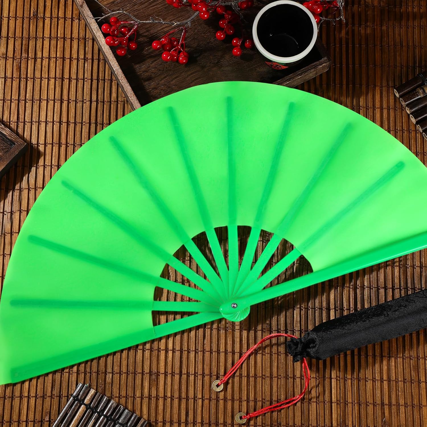 Maitys 2 Packs Large Clap Fans for Line Dancing Large Chinese Folding Hand Fans for Men and Women, Festival, Tai Ji, Kungfu, Martial Art, Gifts (Green and Red)