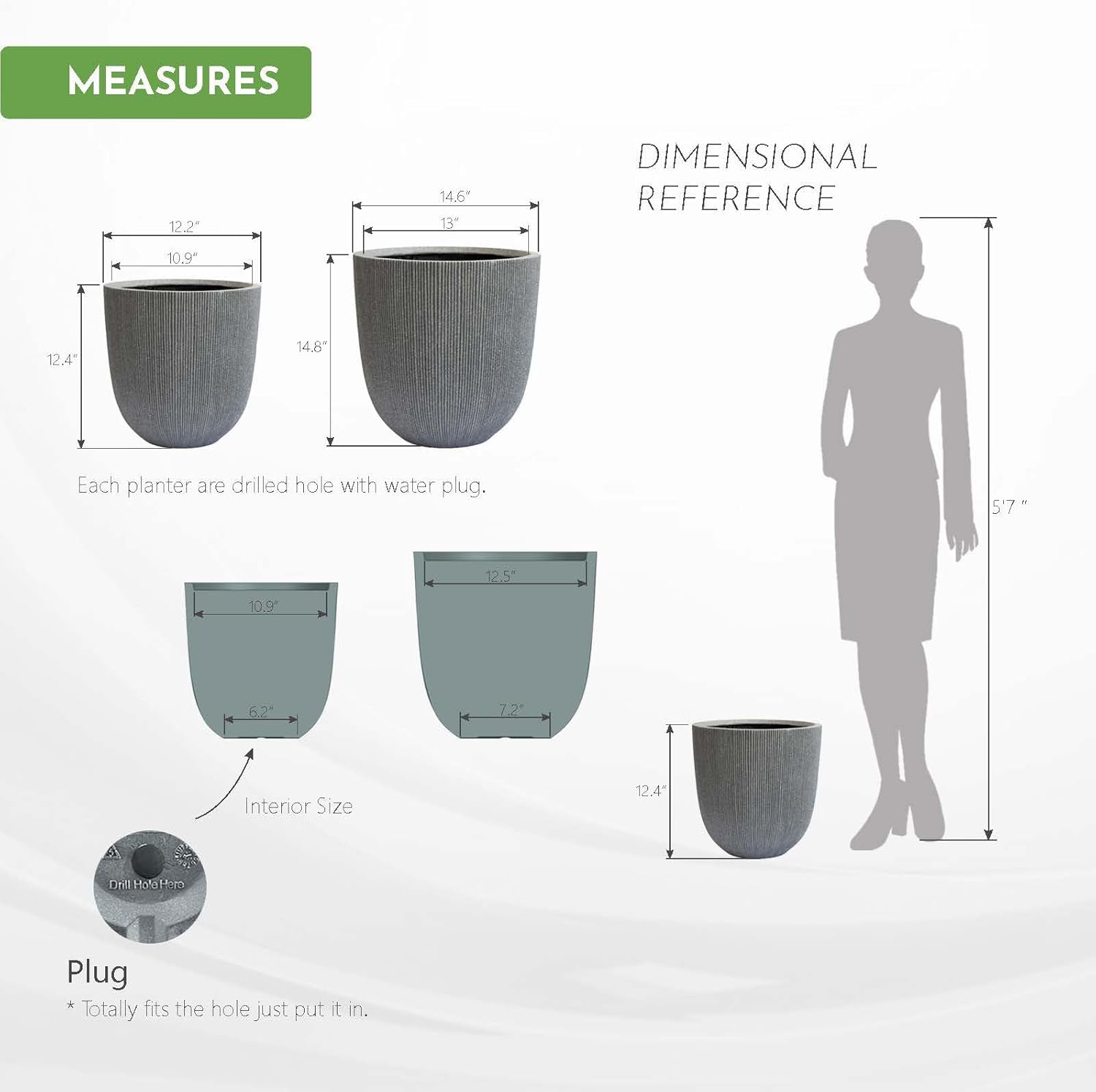 - Large & Versatile Floor Plant Pot: Measuring 12.4" H x 12.2" D (10.5" Pot Opening), these large planters provide ample room for trees, succulents, flowers, and other greenery, making them ideal for gardens, patios, porches, front steps, and indoor spaces.