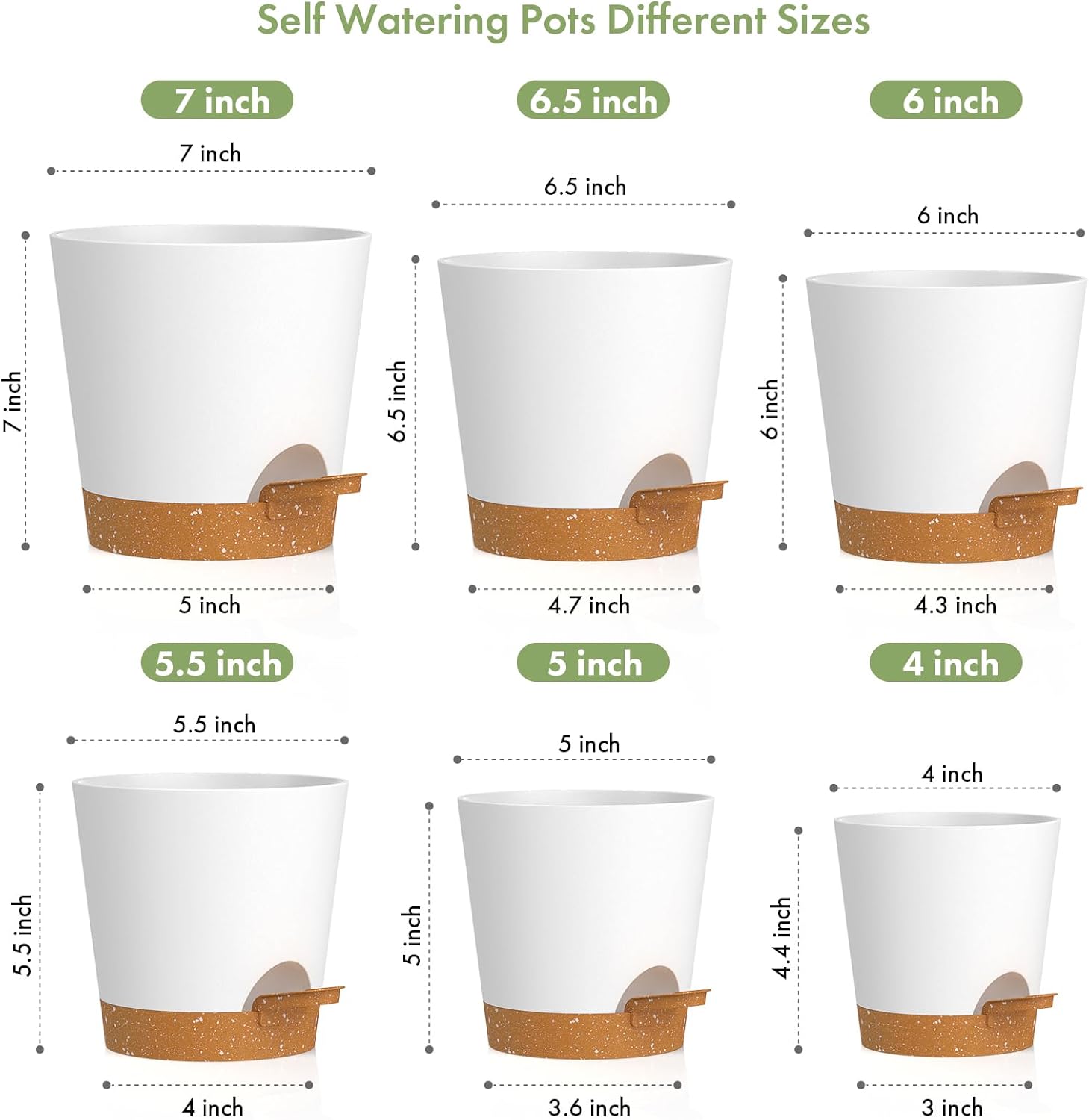 - 【Assorted Sizes & DIY Friendly】6 sizes available (4", 5", 5.5", 6", 6.5"and 7"). These flower pots are very suitable for growing cacti, succulents, aloe vera, basil, flowering plants, air plants, and snake plants. You can use your imagination to color the self watering planters for indoor plants or DIY to make your unique own one with your kids