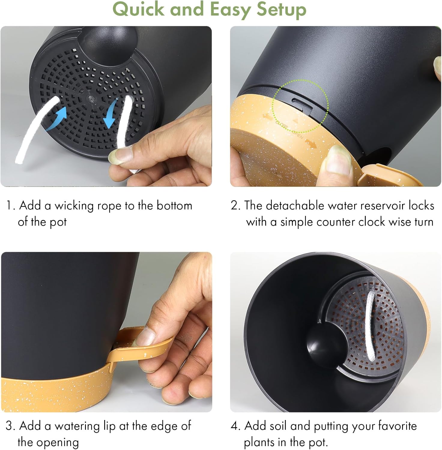 - 【Self-Watering Design】These self watering pots for indoor plants are designed with a wick rope that draws water from the reservoir at the bottom. The set of 6 plastic self watering planter provides an optimal air circulation system for plant roots