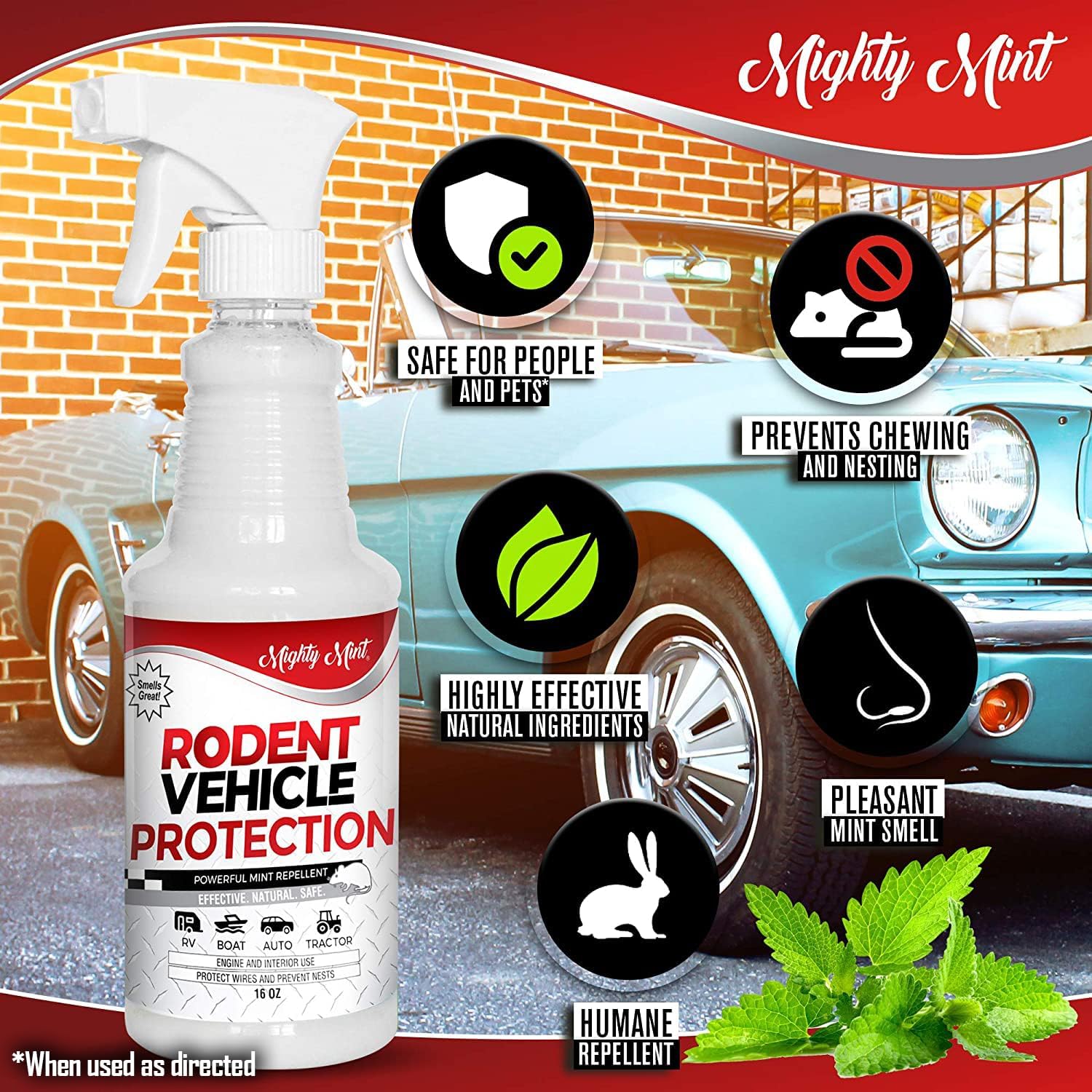 - POWERFUL PLANT-BASED RODENT DETERRENT – Made with extra-concentrated peppermint oil, this spray helps repel mice, rats, and other rodents. Helps prevent nesting and chewing damage in vehicle compartments.