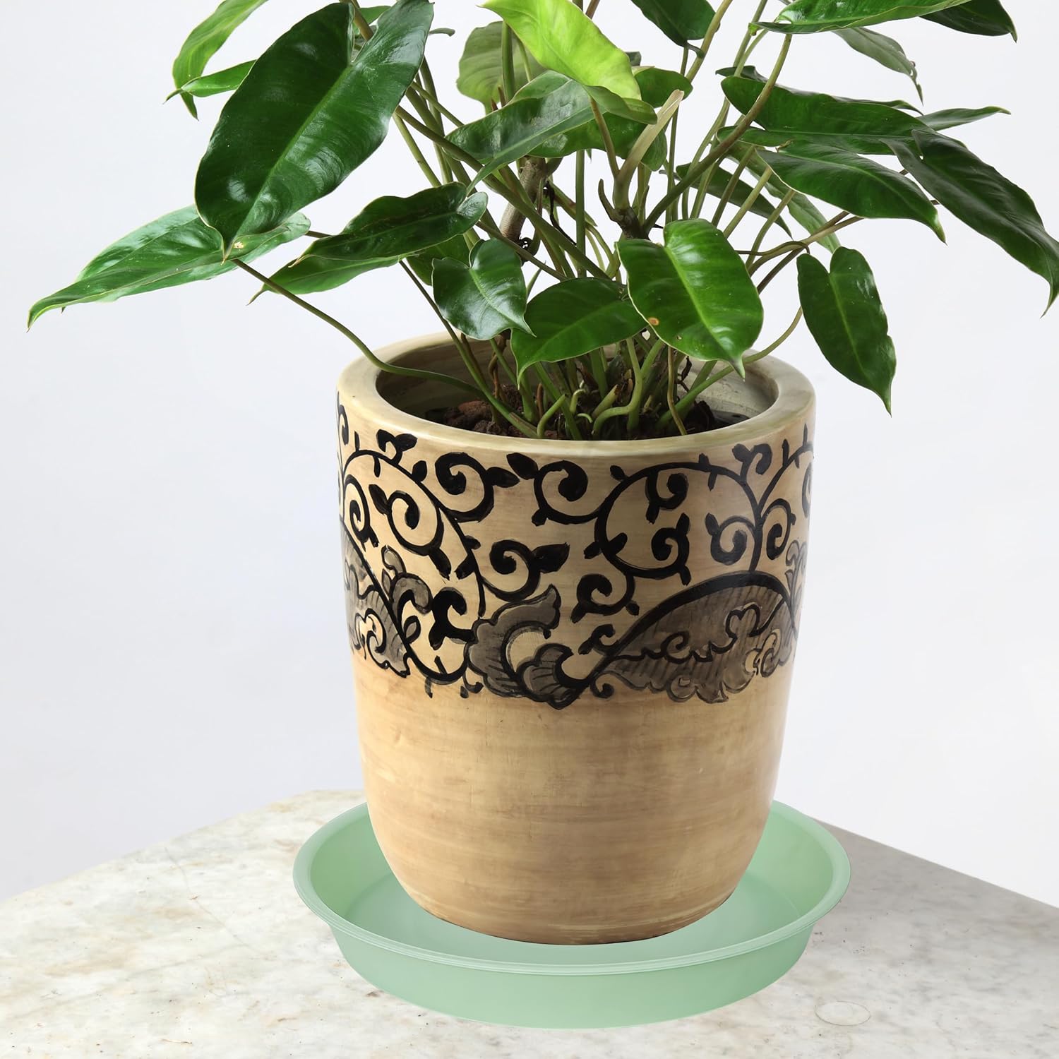 - THICKENED & DURABLE - The plant saucers are made from duty PP plastic.The plastic is sturdy, strong, durable will last for several years, Plastic plant water tray 8 inch are designed with matte finishing exterior in soft, round shapes, bringing out a modern minimalistic styled, plant drip trays for indoors.