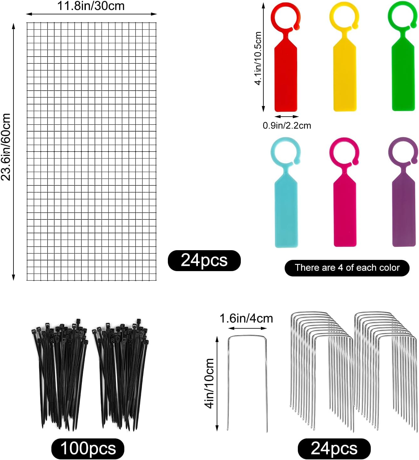 - What You Will Get: Package include 24 square metal plant protection mesh, 24 fixing stakes, 24pcs labels and 100 black strapping straps, you will get enough value for money, with enough quantity for your daily use and replacement, saving you time and money on buying again. Our metal garden protection cage will effectively protect your plants from critters and provide a safe space for your plants to grow.
