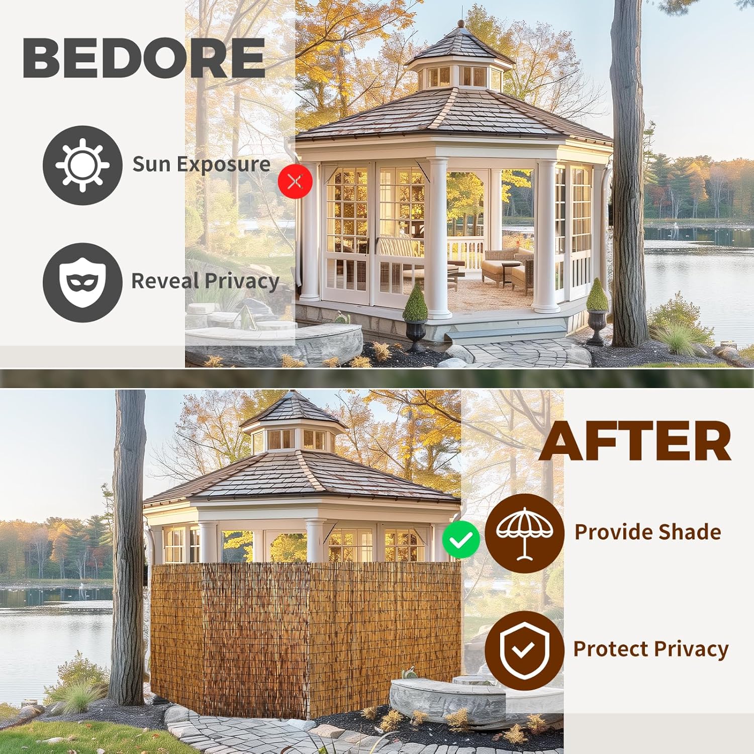 - More Shade and Privacy:This reed screen is made of natural reeds, tightly woven together to block sunlight and block the view of neighbors. In addition, the reed screen allows weak light to pass through, providing necessary light for reading or daily activities