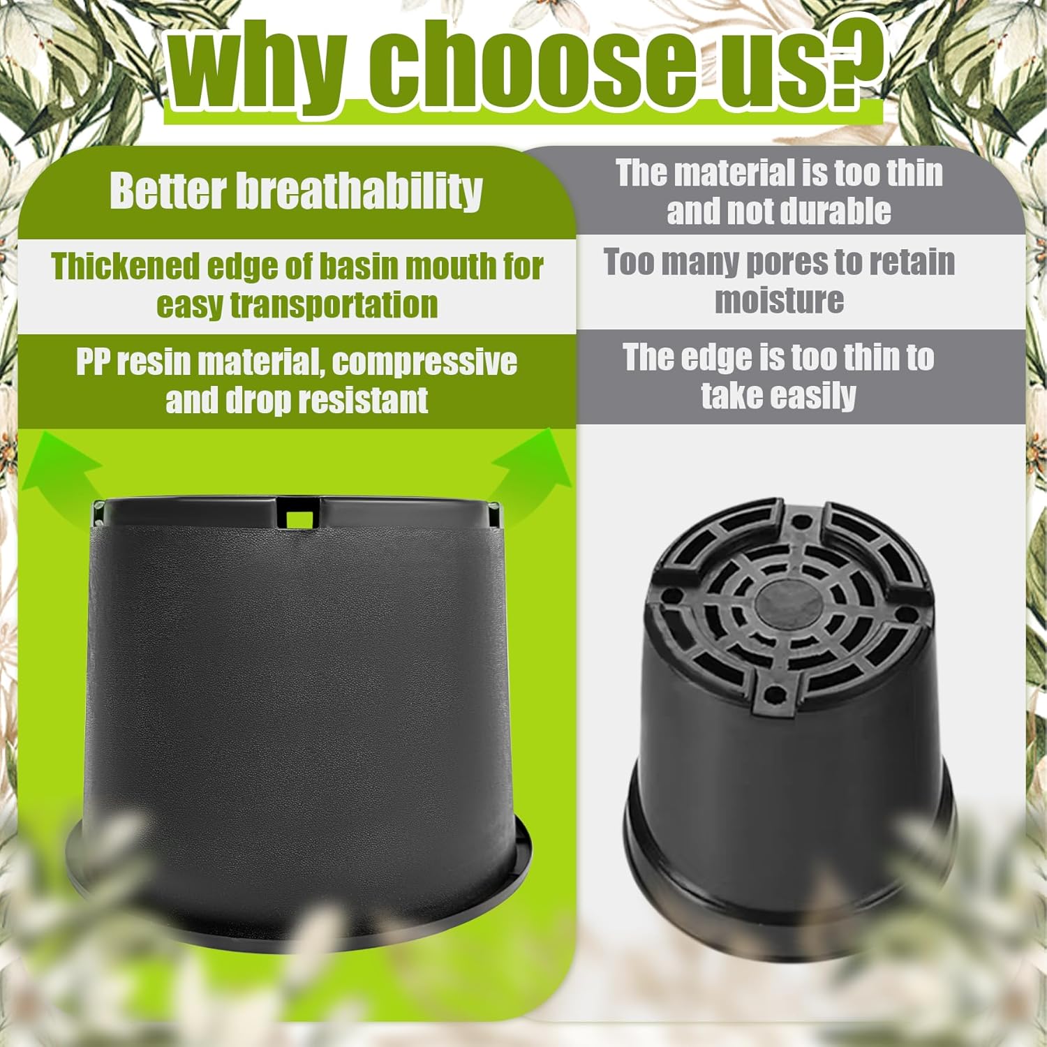 - Sturdy and durable - Plant pots are made of high quality PP plastic, which is tough, not easy to break or crack. Whether it is digging or daily use, it can withstand pressure and ensure a long service life.