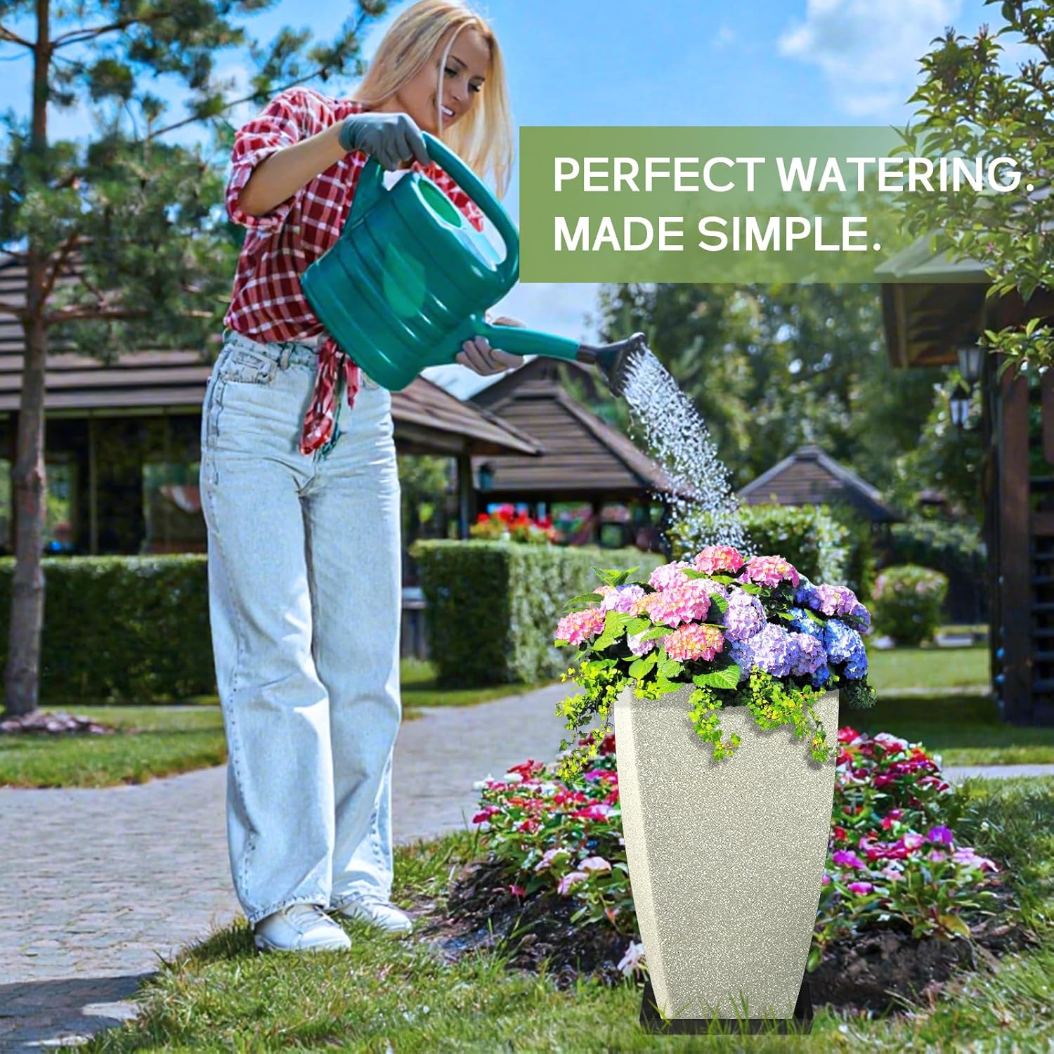 - 【Space-Saving & Versatile】21-inch tall x 12-inch wide tapered shape fits large plants (ficus/olive trees) while saving 20% floor space vs. straight-edge planters. Use indoors or outdoors.
