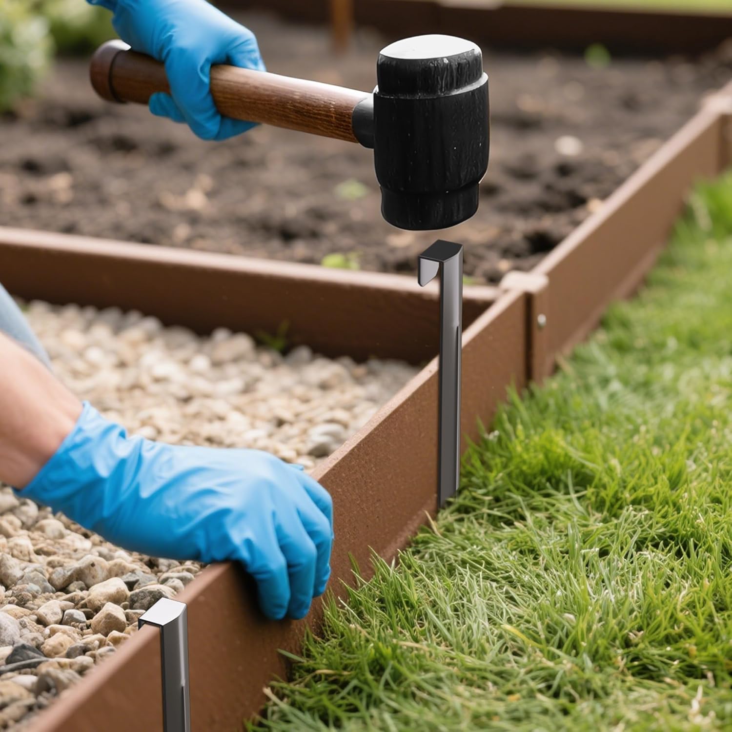 - 【Explanation for apply】Install the garden edging stakes by tapping them into no dig edges or weed fabric with a hammer. Place them about 4 feet apart from each other, and simply tap the edge grooves with a hammer or mallet to secure them in place