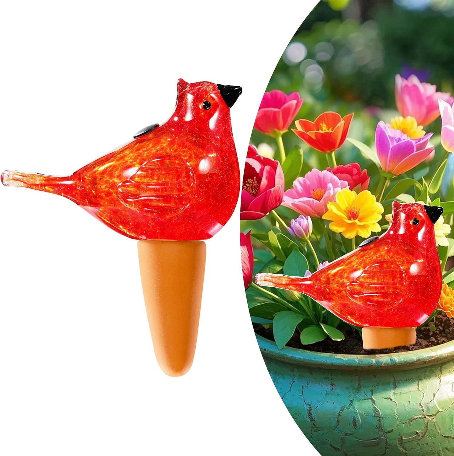 - EASY TO USE: We arranged a small water pour hole on the glass bird, which makes it easy to refill the water level at any time without taking it out of the soil, it can always nourish your plants