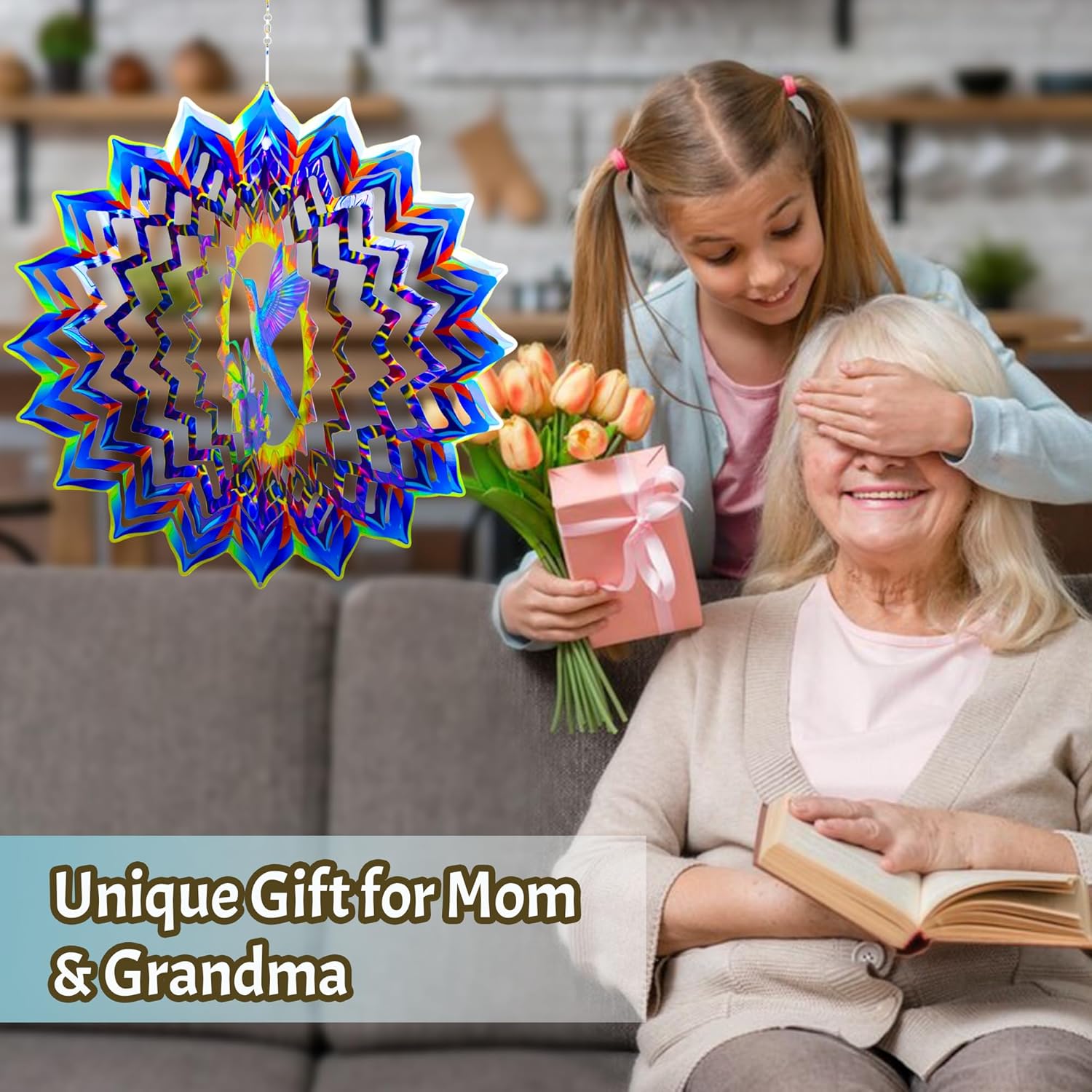 - 【Product Features】: With its unique light-reflective surface and larger size, this wind spinner captures sunlight beautifully as it spins in the breeze. The vivid 3D patterns and vibrant colors create a stunning visual effect that's even more striking with the increased display area.