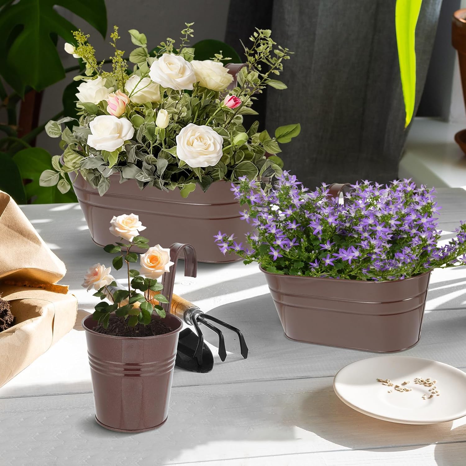 - 【SIZE DETAILS】Each set of Railing Flower Baskets contains 6 large flower baskets with dimensions of 16" x 5.9" x 6", 3 medium-sized flower baskets with dimensions of 10.6 " x 5.5" x 4.8", and 4 small flower baskets with dimensions of 3.8" x 3.8" x 4.0"(L x W x H).The Flower Basket Hook is included in the package and is very easy to install.