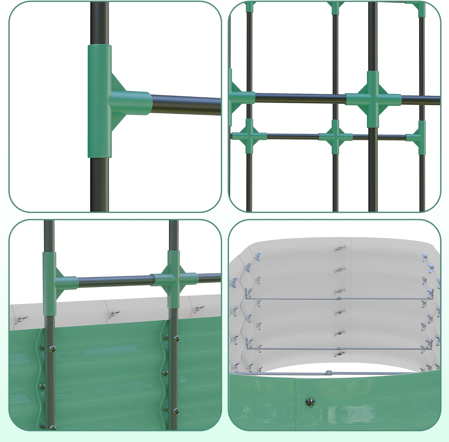 Galvanized Raised Garden Bed with 96" Tall Vertical Arch Trellis – Expandable Rust-Resistant Planter Box for Outdoor Plants, Flowers, Herbs & Vines – Includes Plant Clips, Drainage Netting,Green