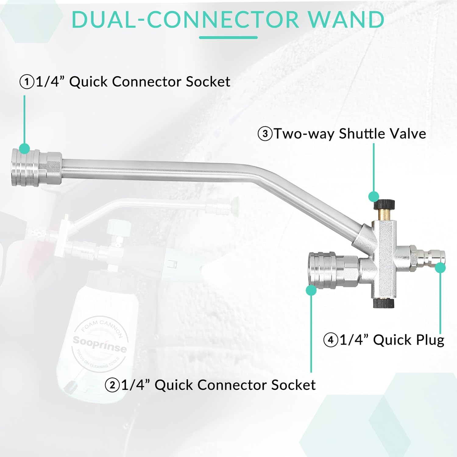 Sooprinse Pressure Washer Foam Cannon with Dual Connector Accessory, Power Washer Soap Cannon with Double Tip Attachment, 5 Power Washer Nozzle Tips, 1/4" Quick Connect, 4000 PSI