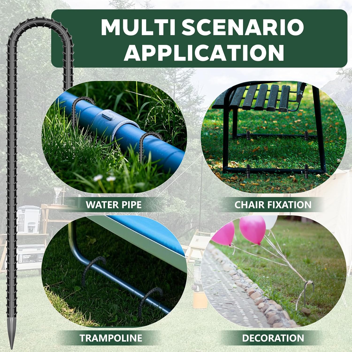 - Wide Applications: Versatile and reliable, our lawn stakes are perfect for a variety of outdoor projects. Whether you're securing tents, tarps, or landscape fabric, trust in their reliability and versatility for all your anchoring needs