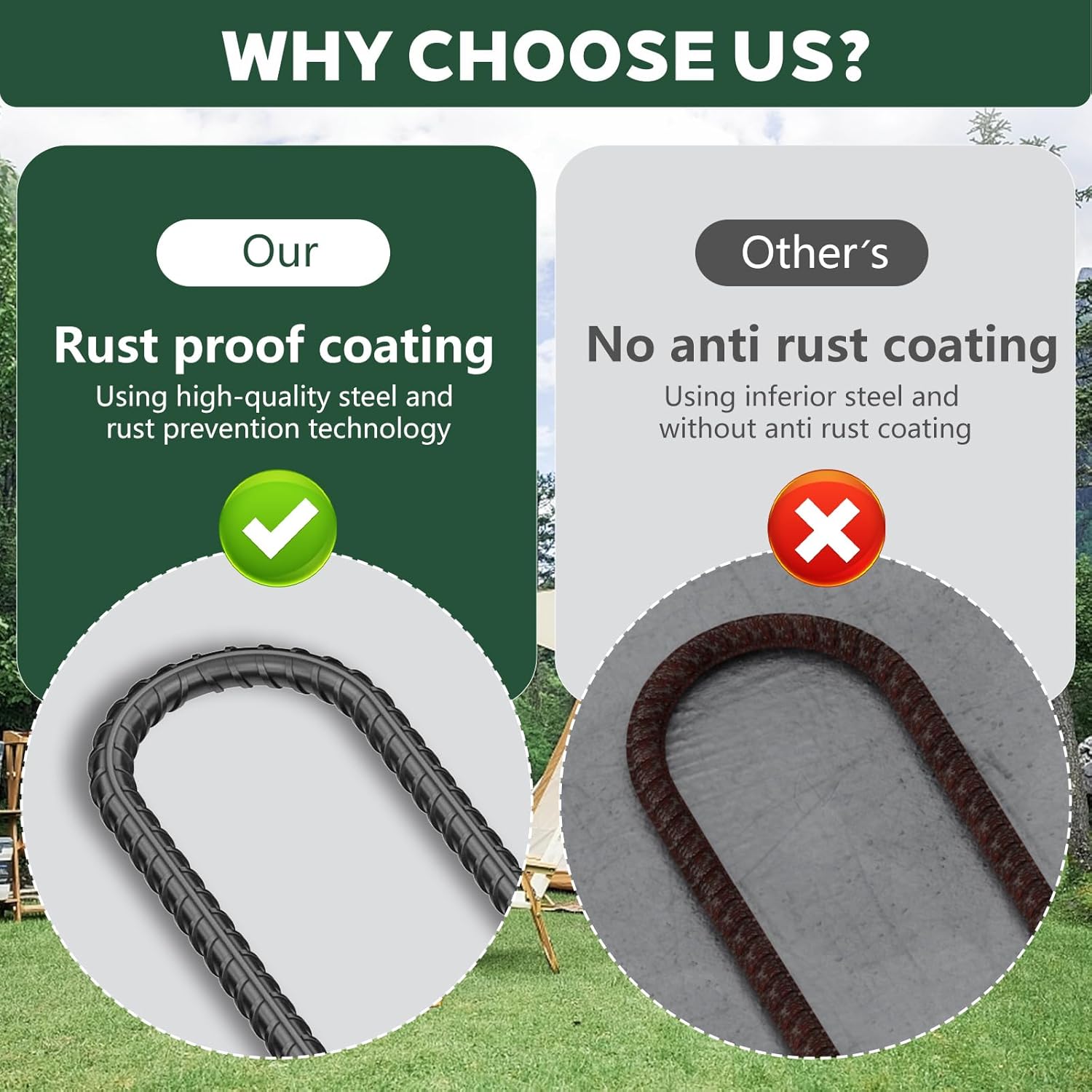 - Stability: No more struggling with flimsy stakes! Our rebar stakes 12 inch feature a unique spiral design, providing maximum grip and stability in various terrains. Whether it's sandy beaches or rocky grounds, these stakes are up for any adventure