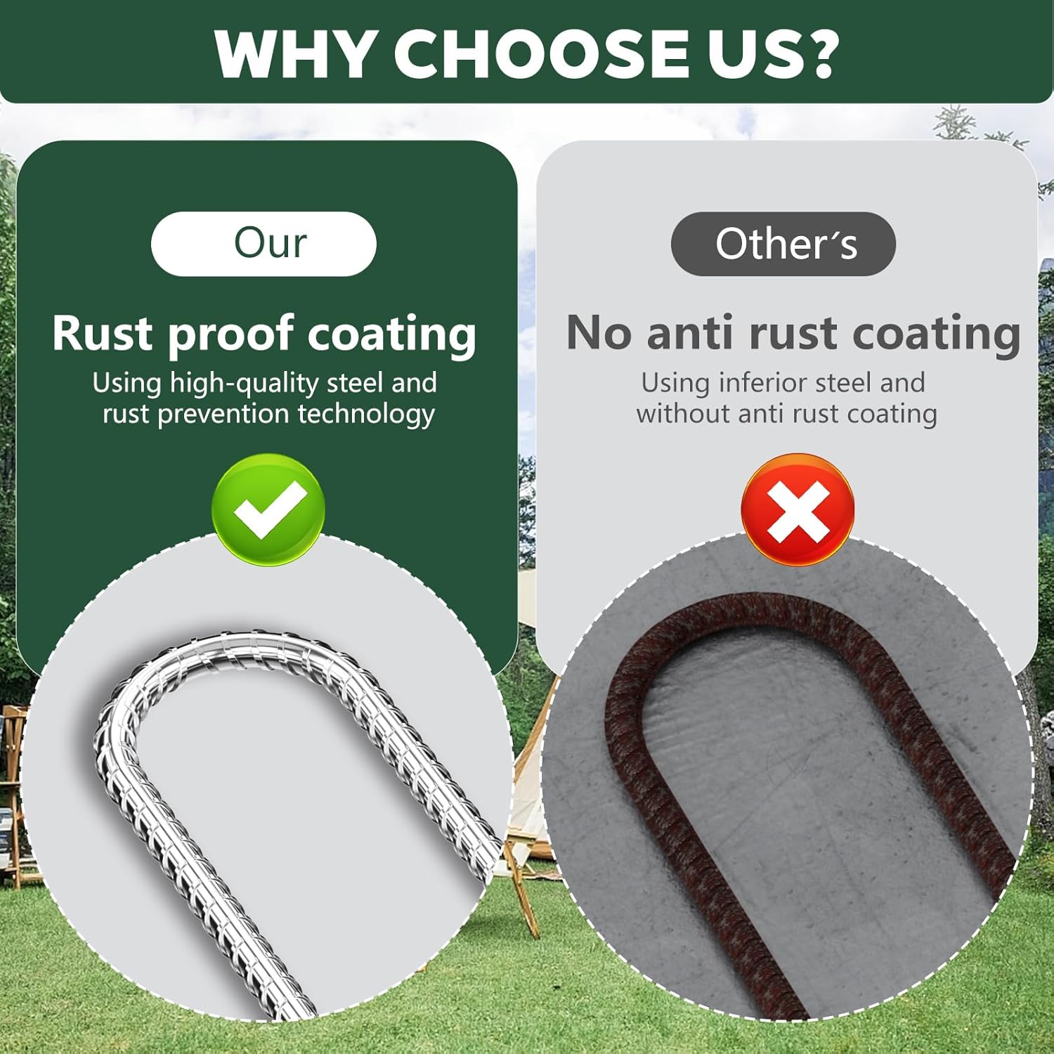 20 Pieces Trampoline Stakes Anchors High Wind Heavy Duty,U Shaped Garden Hooks Stakes for Ground,Trampoline Tie Downs Anchor Kit,Bounce Horseshoe House Stake,Rebar Camping Tent Stakes,12 Inch Long