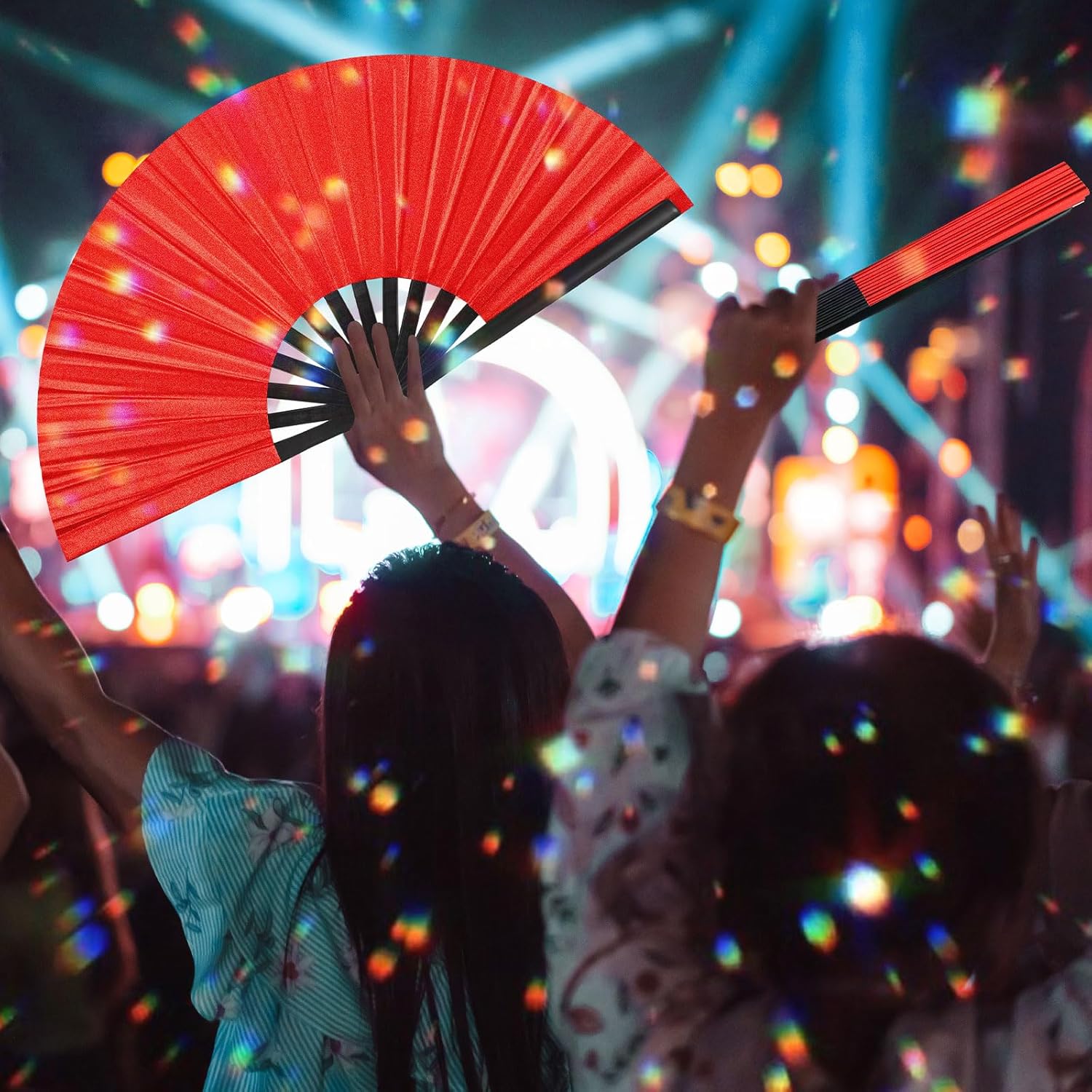 - Gorgeous design: just open the large rave fan with a flick of the wrist, loud sound when turned on at high speed, easy for you to open and close smoothly