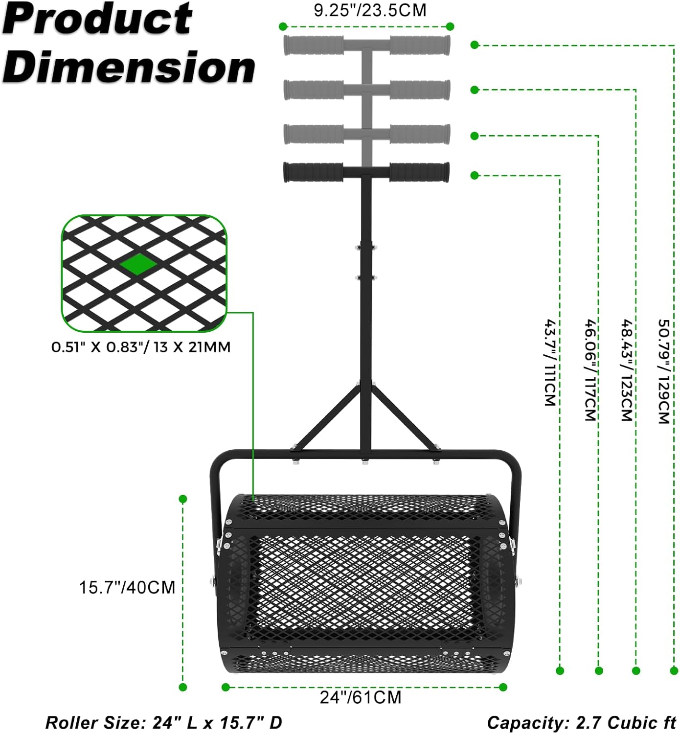 - 5. Efficient Lawn Care: The garden spreader breaks up clumpy fertilizers during rolling, ensuring even distribution of compost