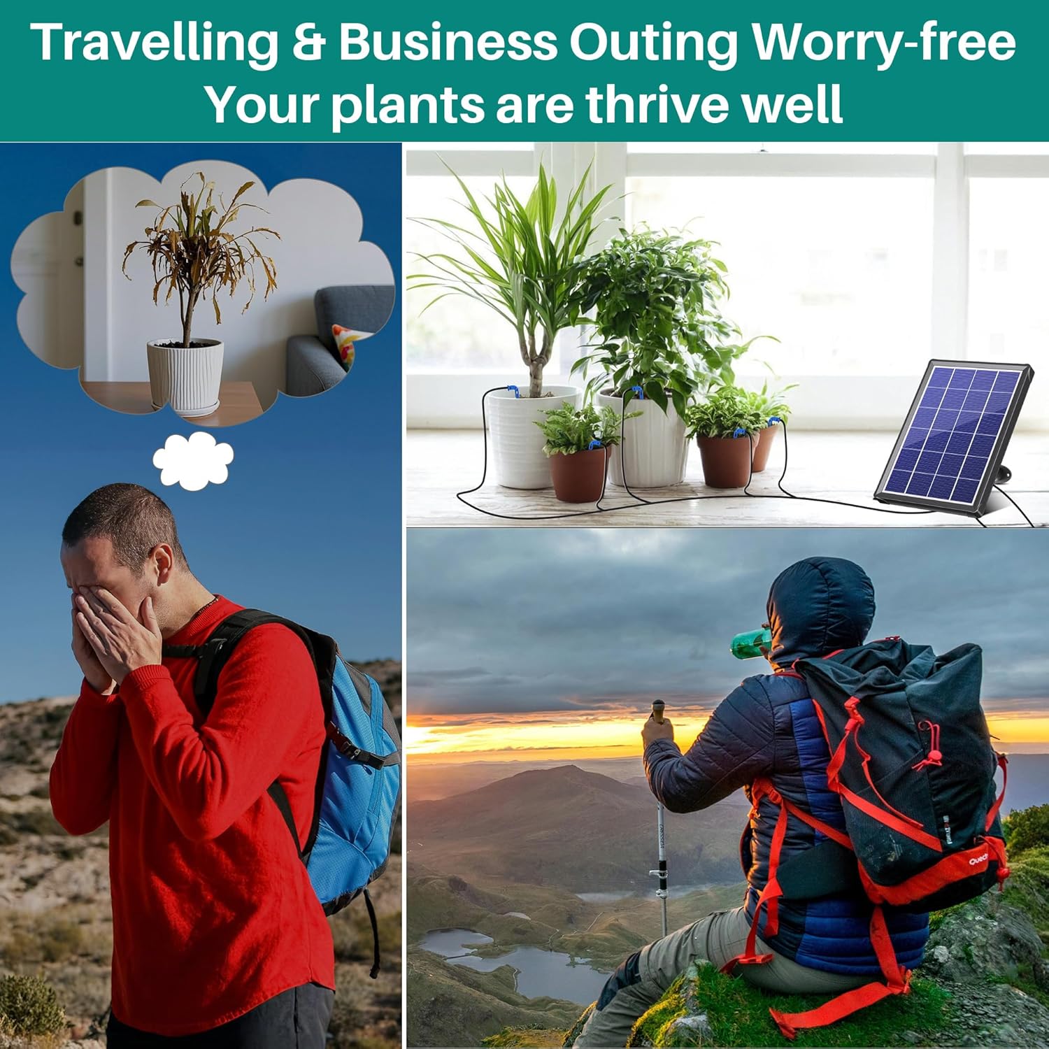 - Solar-Powered & Battery Backup: The smart solar drip irrigation system with built-in 2200mAh battery automatically switches between solar and battery power, ensuring reliable watering day and night - no electrical outlets needed! Perfect for remote garden beds, balconies, and eco-conscious gardeners looking to reduce their carbon footprint